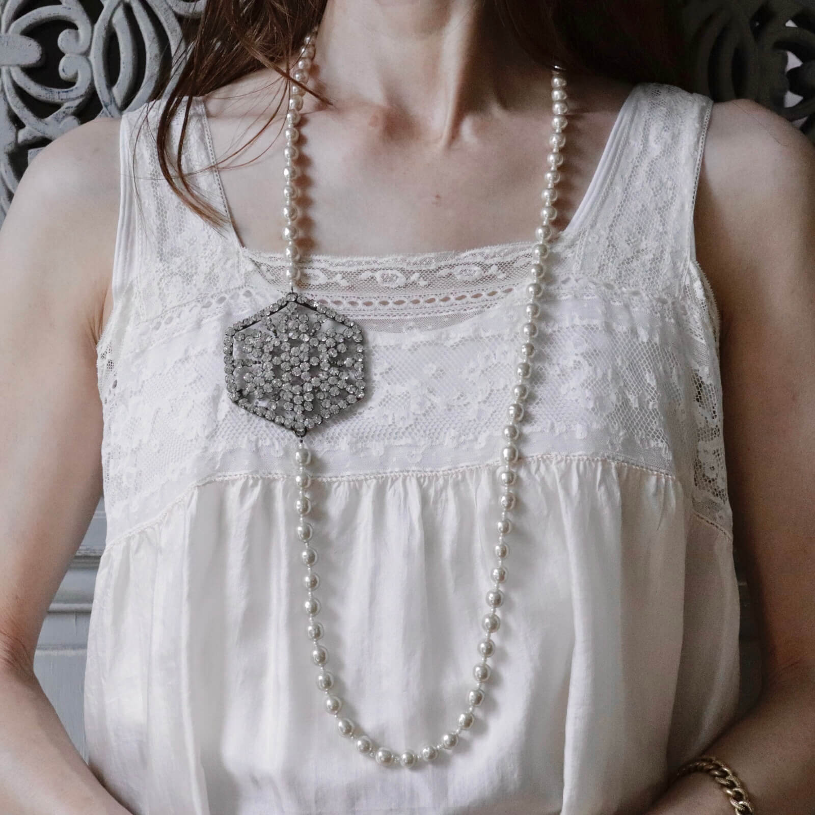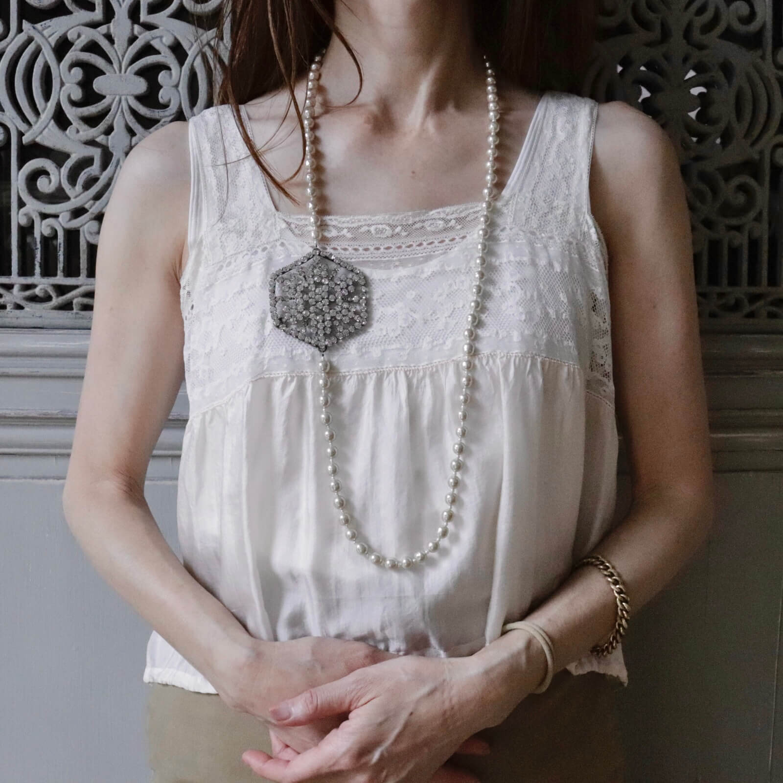 ヴィクトリアン ヘキサゴンパーツ パールネックレス