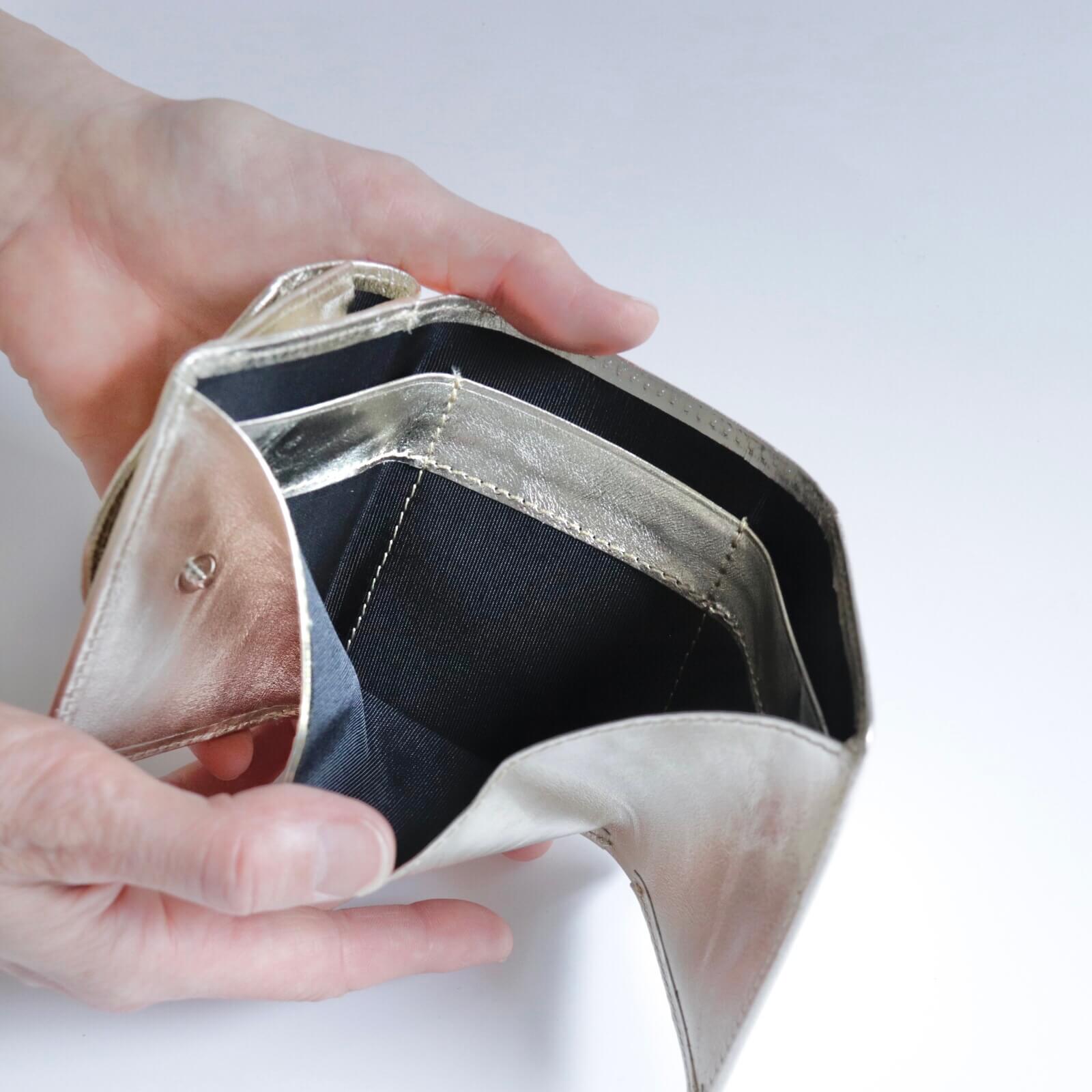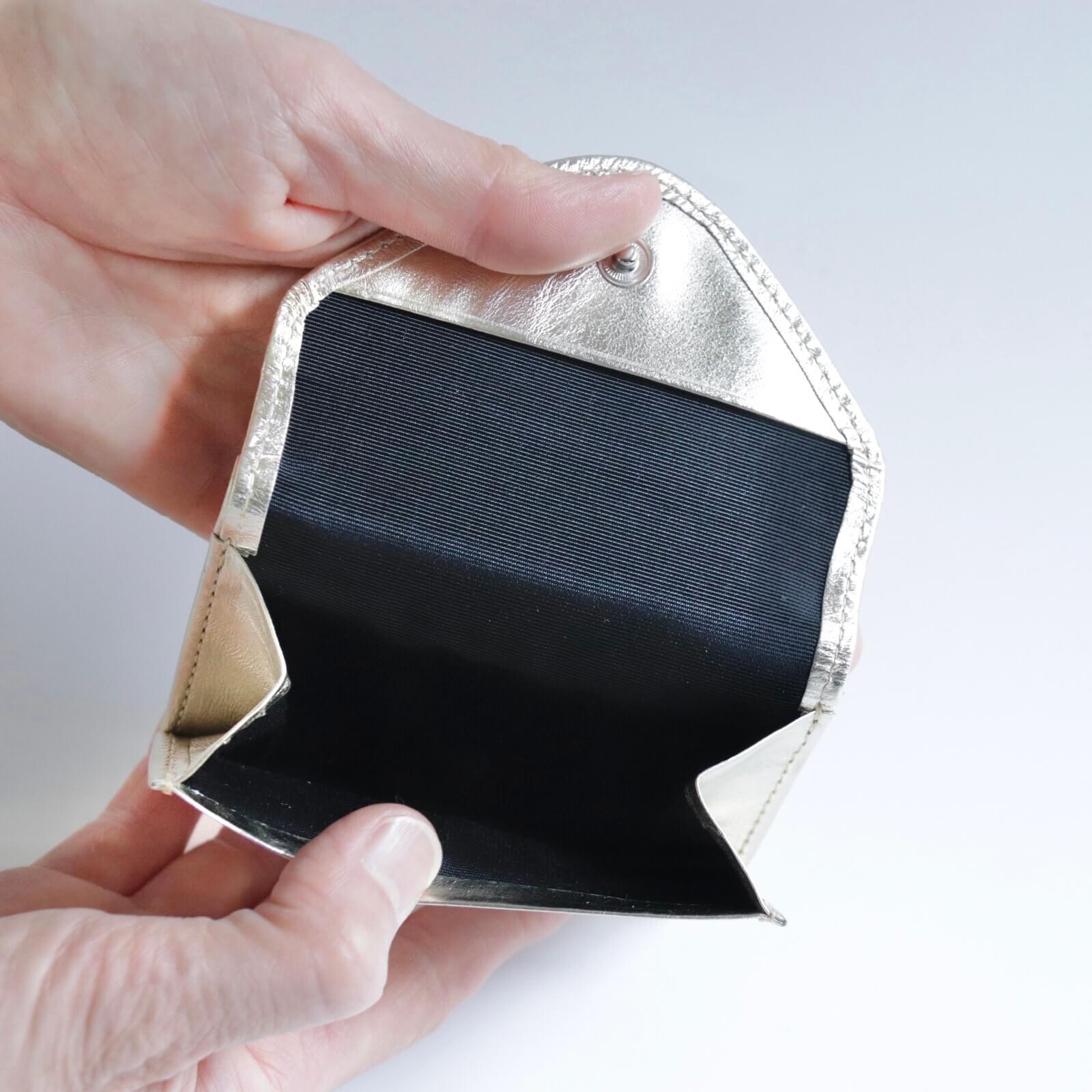 インポート風のシボ感が絶妙で、コイン入れは大きく口が開くので中が見やすく作ってあります。