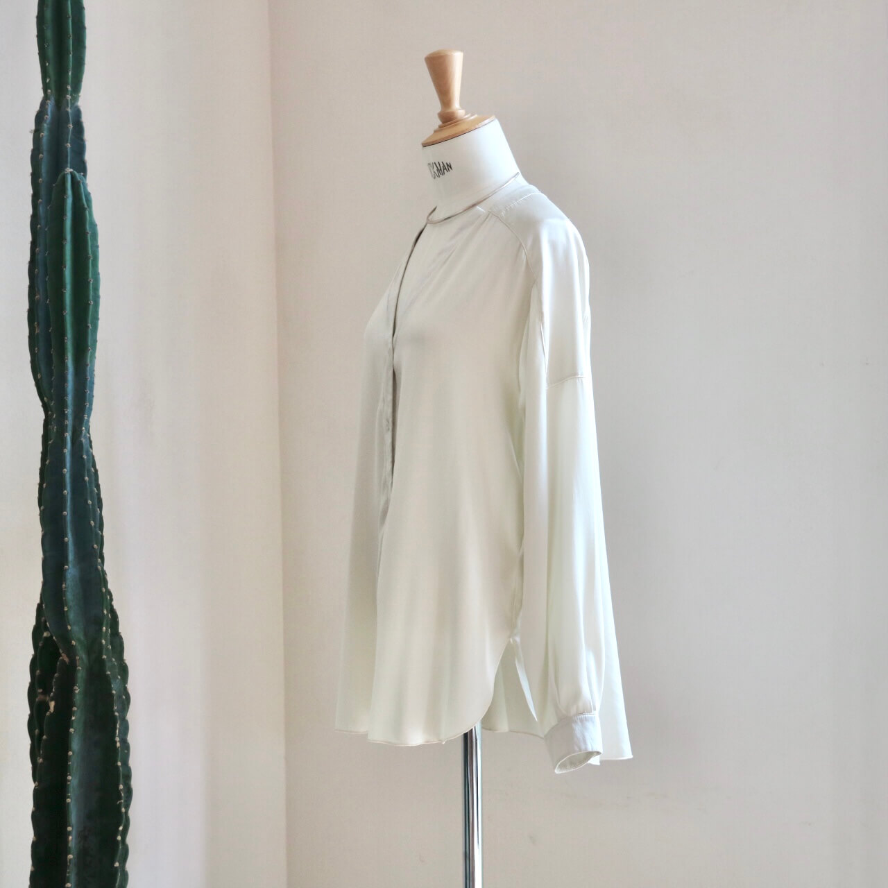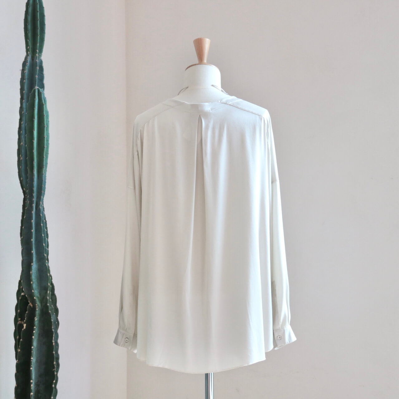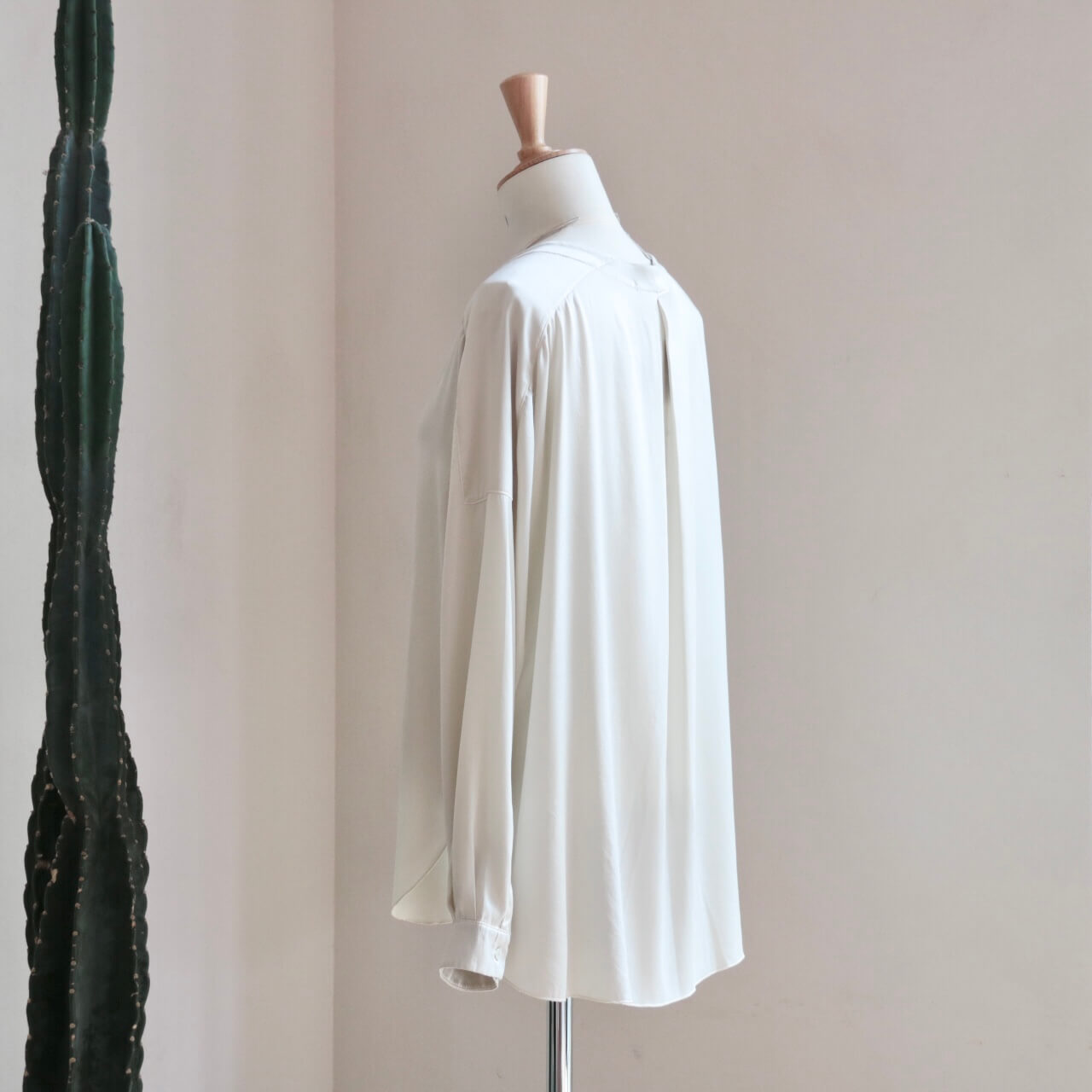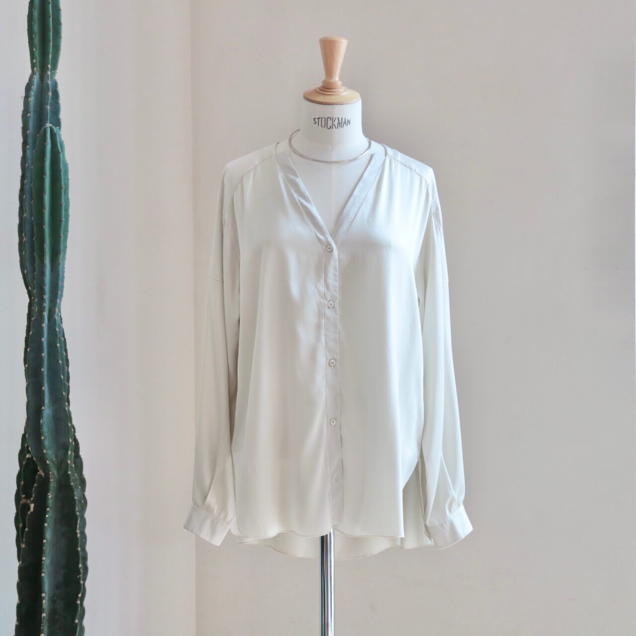 ホワイトでもなくアイボリーでもない少しグレーがかった絶妙なカラーが、こなれた大人カジュアルを演出してくれるブラウスです。