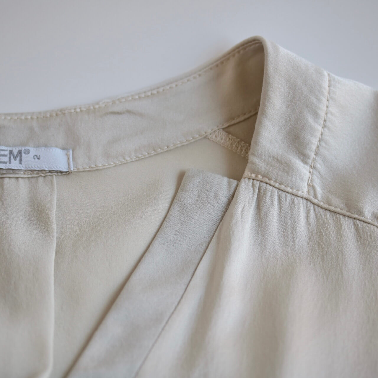 とろみのある生地は、シルクならではの存在感と上品さを醸し出してくれる大人カジュアルに。