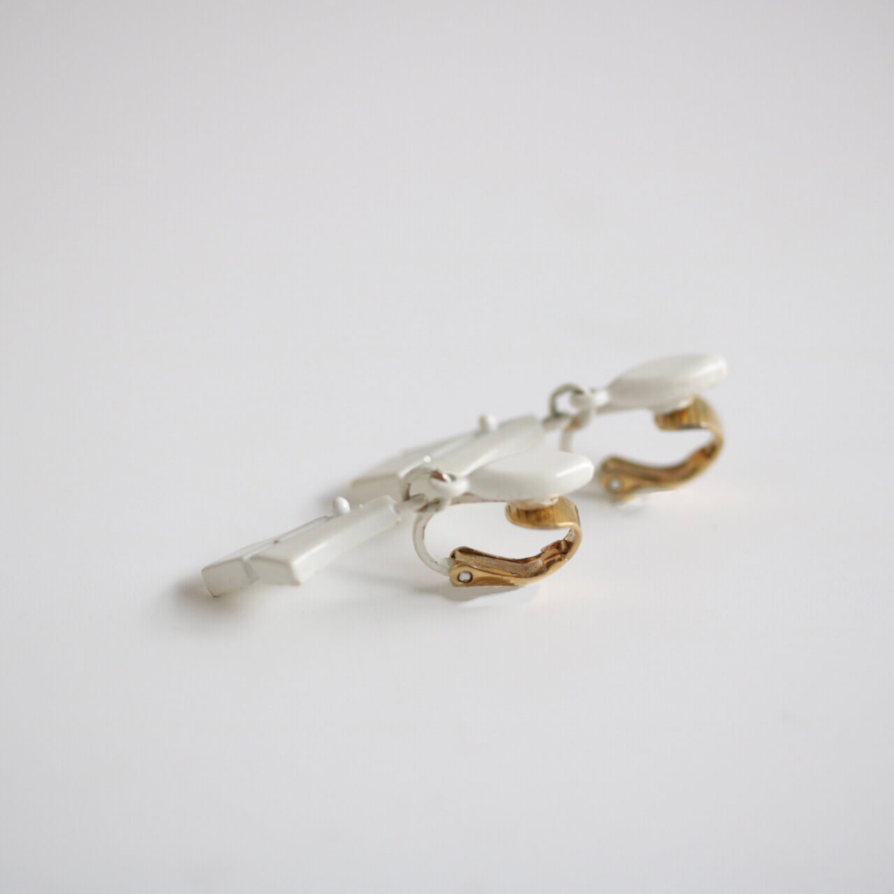 メタルにホワイトエナメルの塗装がかかったイヤリングです。