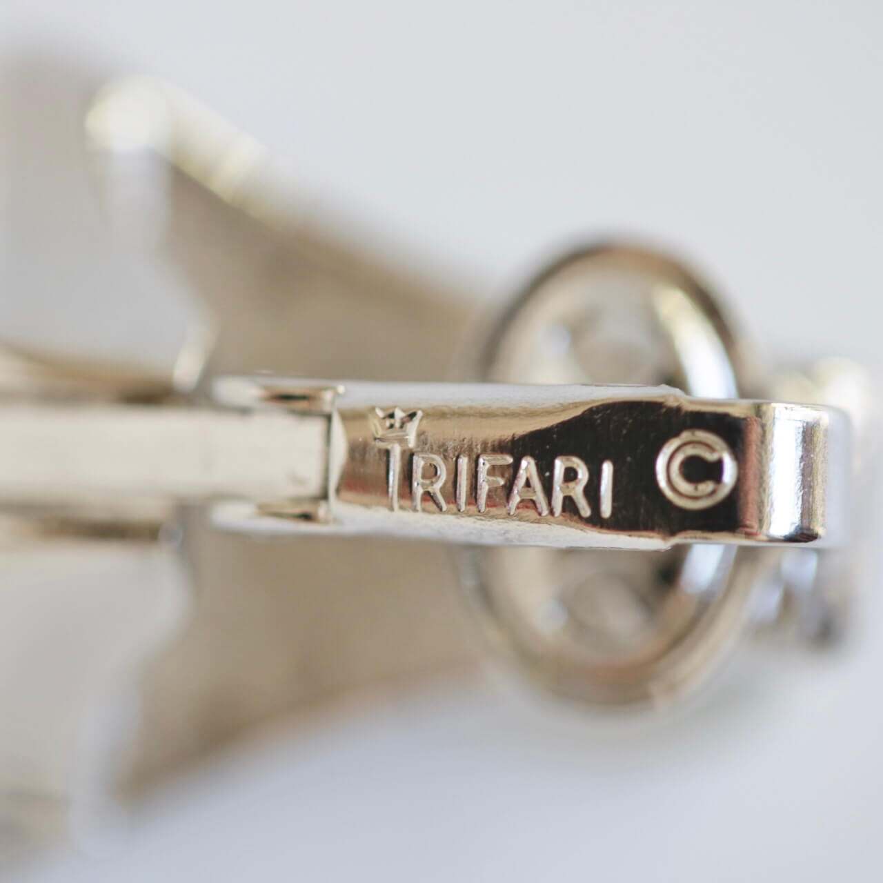 裏面には『TRIFARI©(Tの上に王冠模様)』の刻印がございますので、1955〜60年代のものと考えられます。