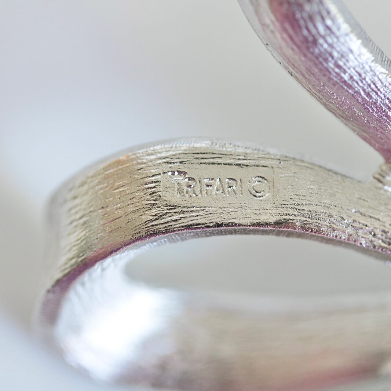 裏面には『TRIFARI©(Tの上に王冠模様)』の刻印がございますので、1955〜60年代のものと考えられます。