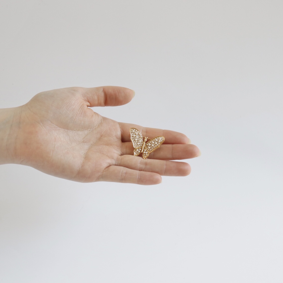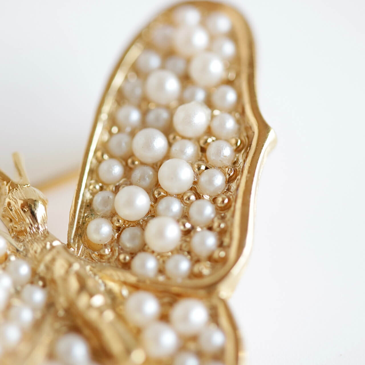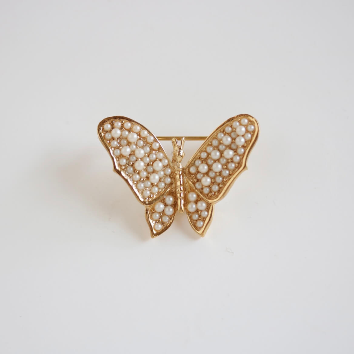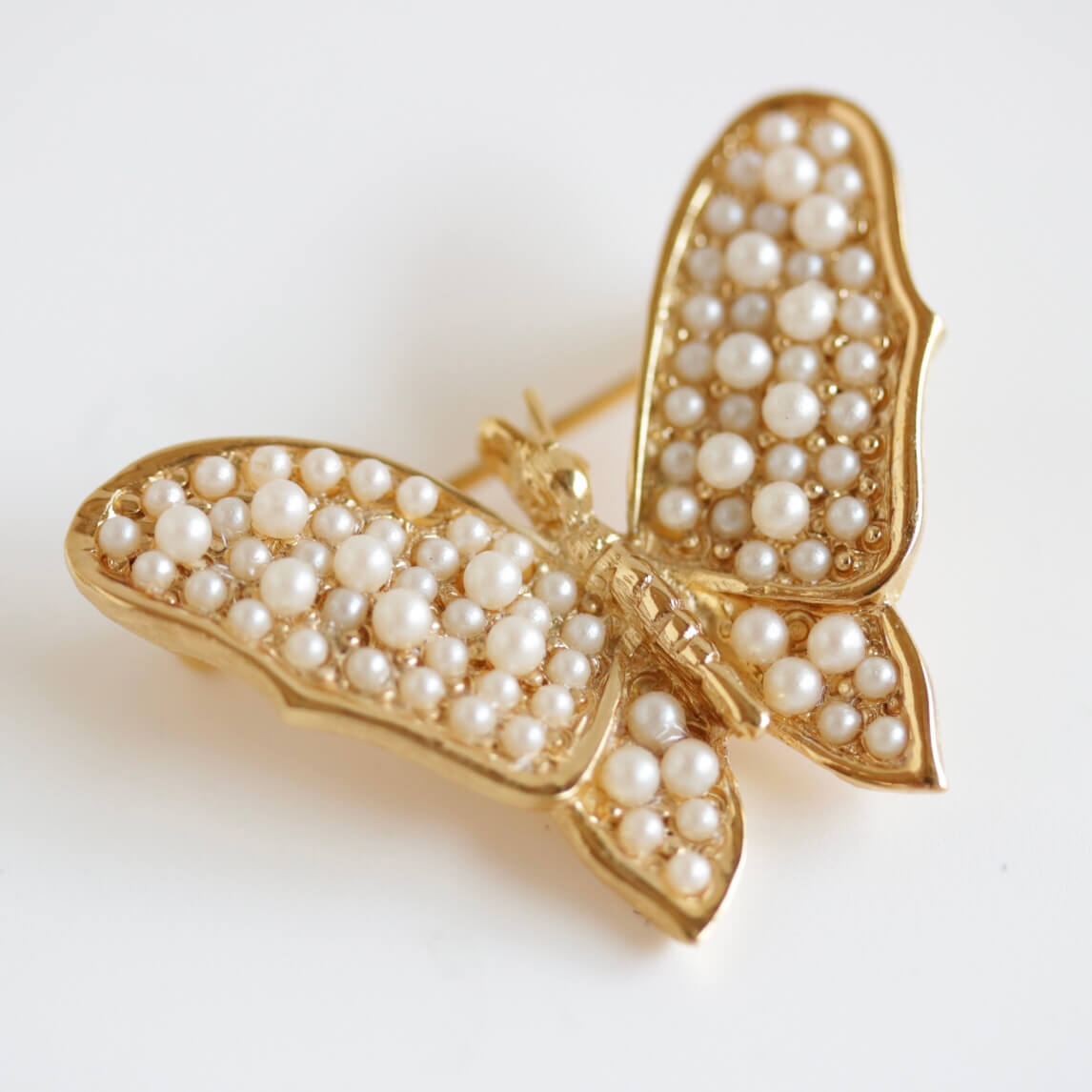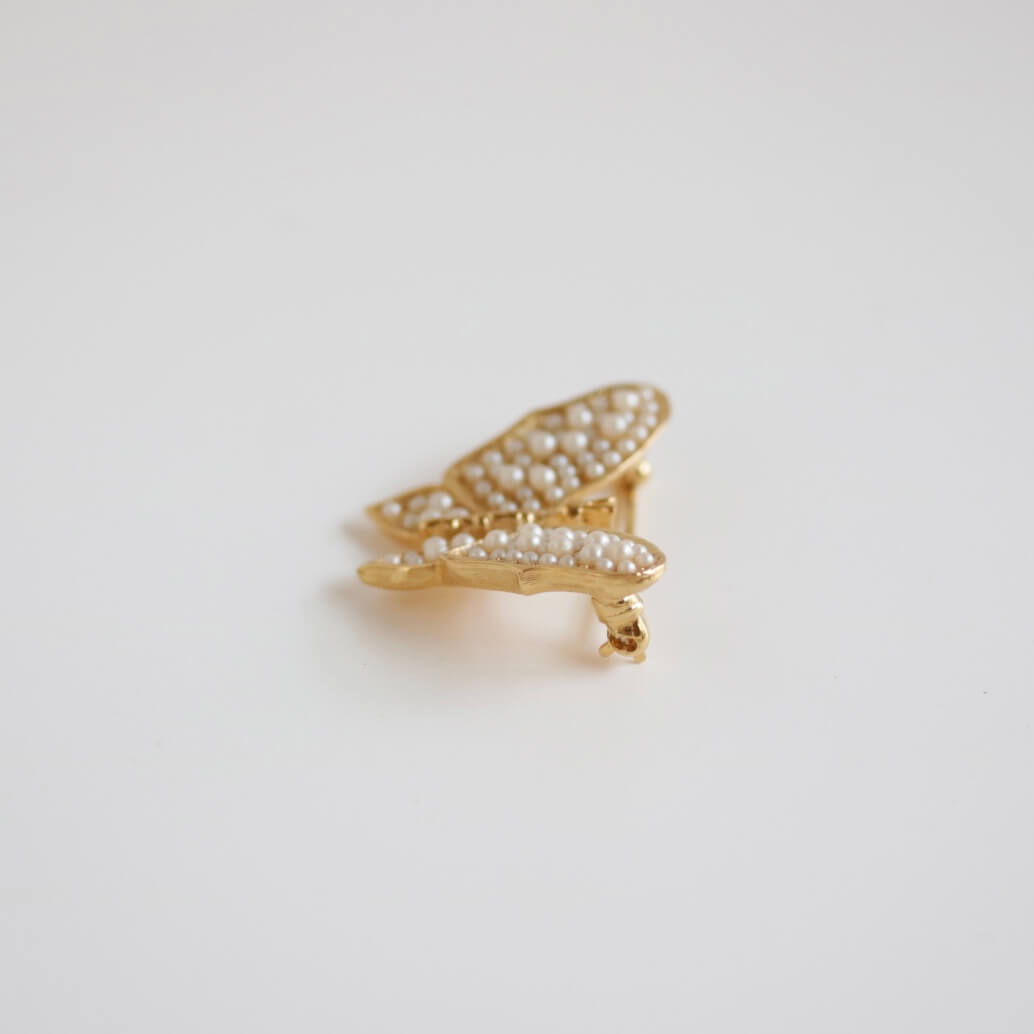 ヴィンテージ「トリファリ」パールゴールドバタフライブローチ