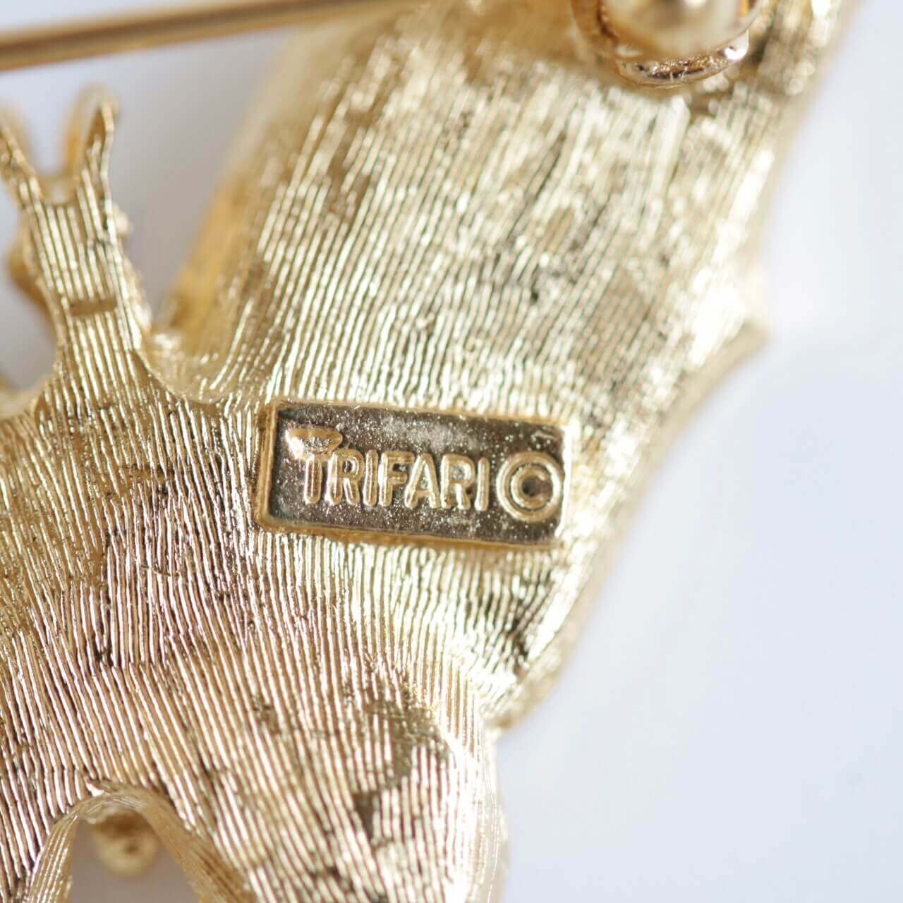 裏面には『TRIFARI©(Tの上に王冠模様)』の刻印がございますので、1955〜60年代のものと考えられます。