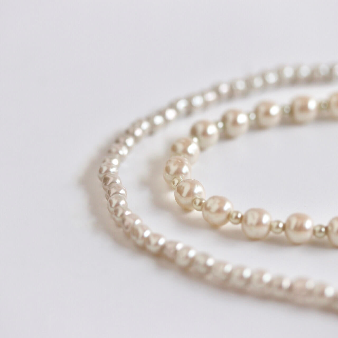 1連のLongのネックレスと一緒につけていただくと、3連ネックレスとしてバランスよくお使い頂けます。