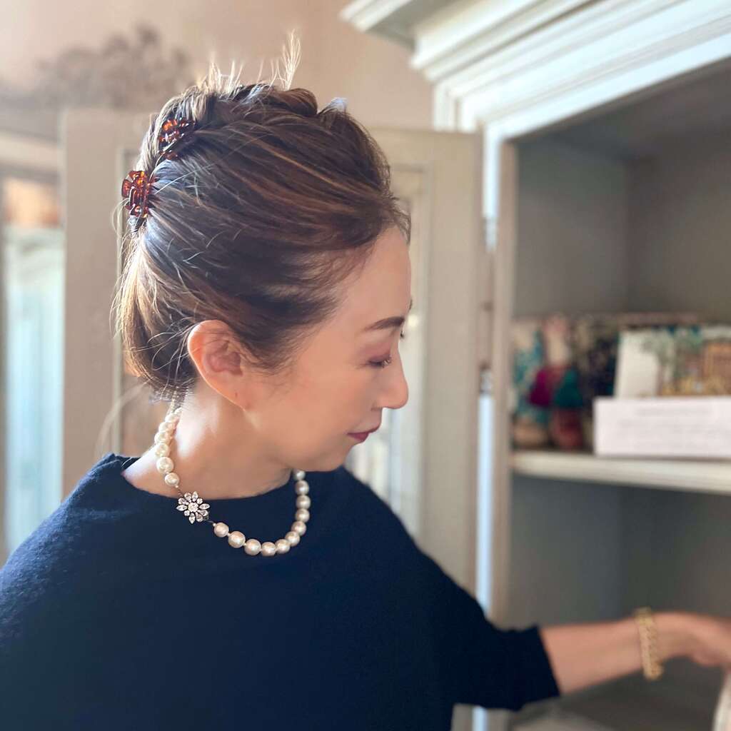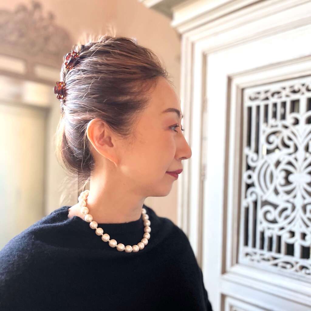 直径12mmのバロックパールを使用した、シンプルかつ上品なデザインと、こだわり抜いて作られたオリジナルのフラワークラスプが、後ろ姿も抜かりなく美しく演出してくれます。