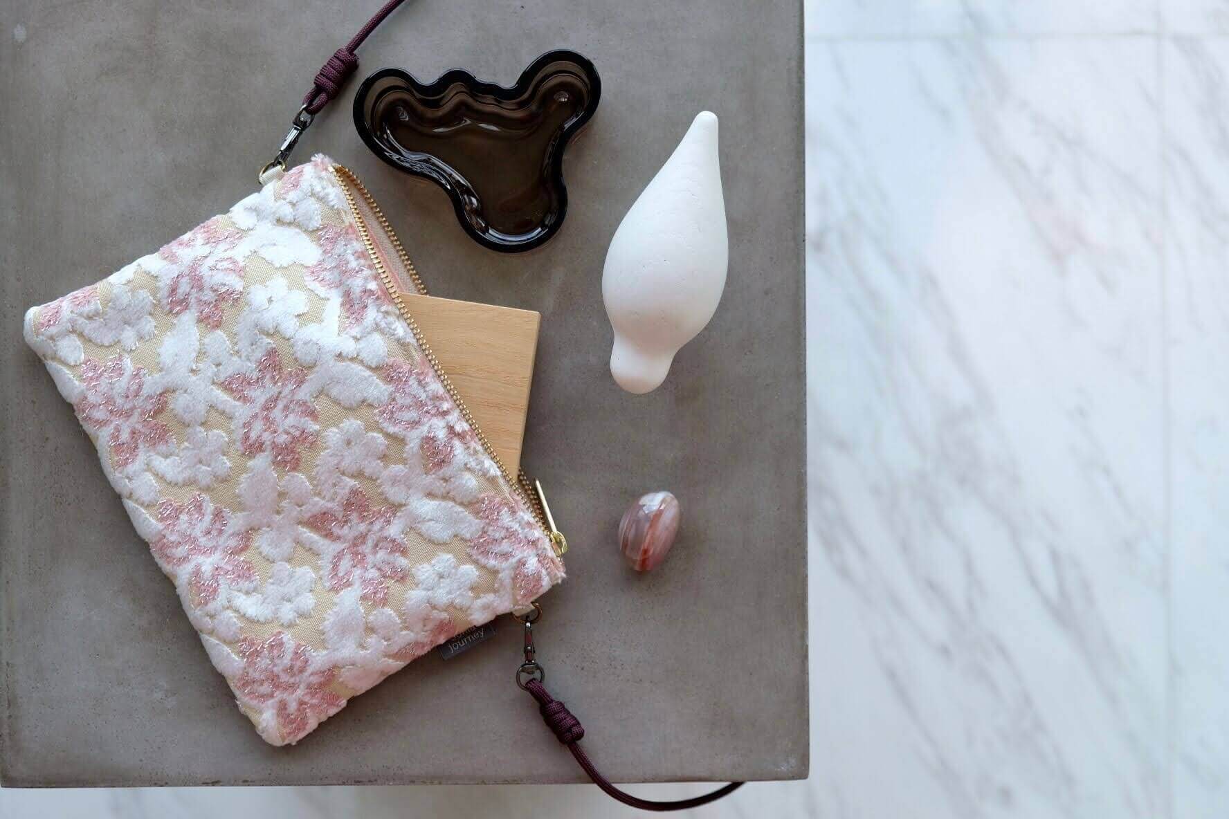 "sonia journey" スクエアポーチ KIMOU PINK FLOWER(パラコード用金具付)
