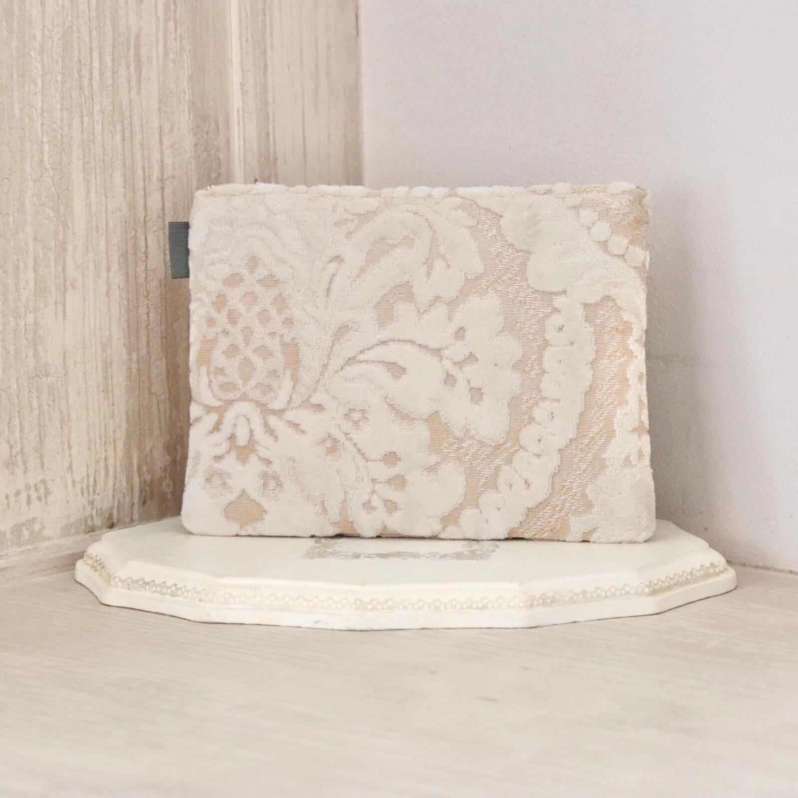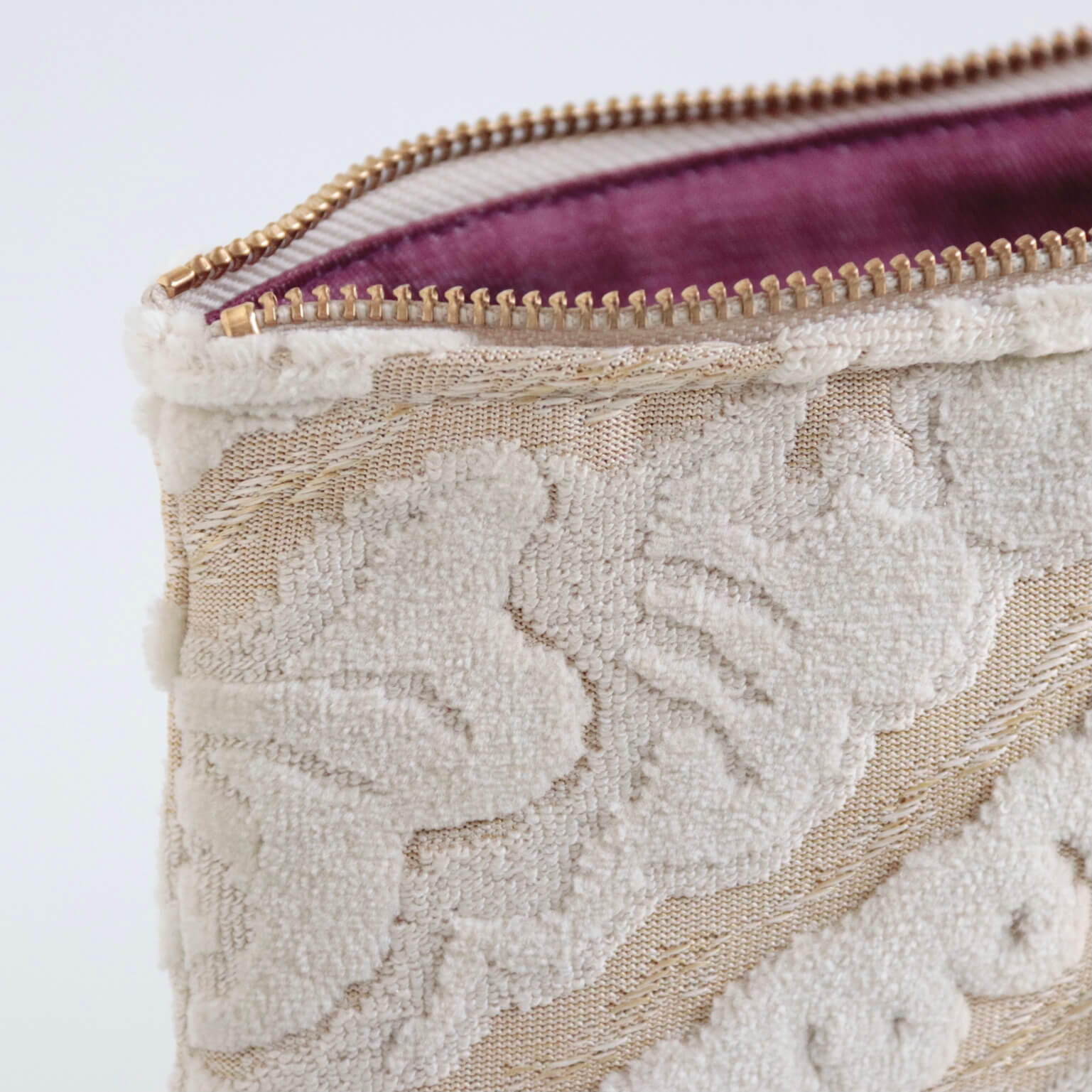 柄部分は起毛しており、ベージュベースにベージュの柄模様が美しいスクエアポーチです。