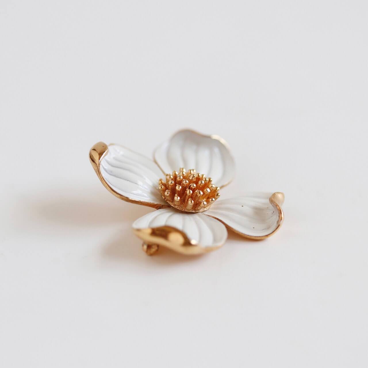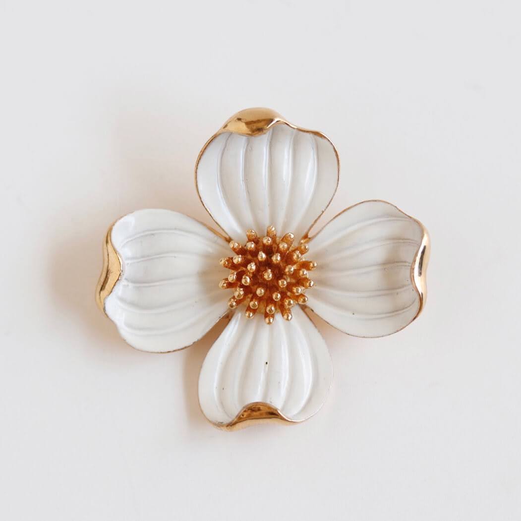 ヴィンテージ「トリファリ」ハナミズキブローチ ホワイトM