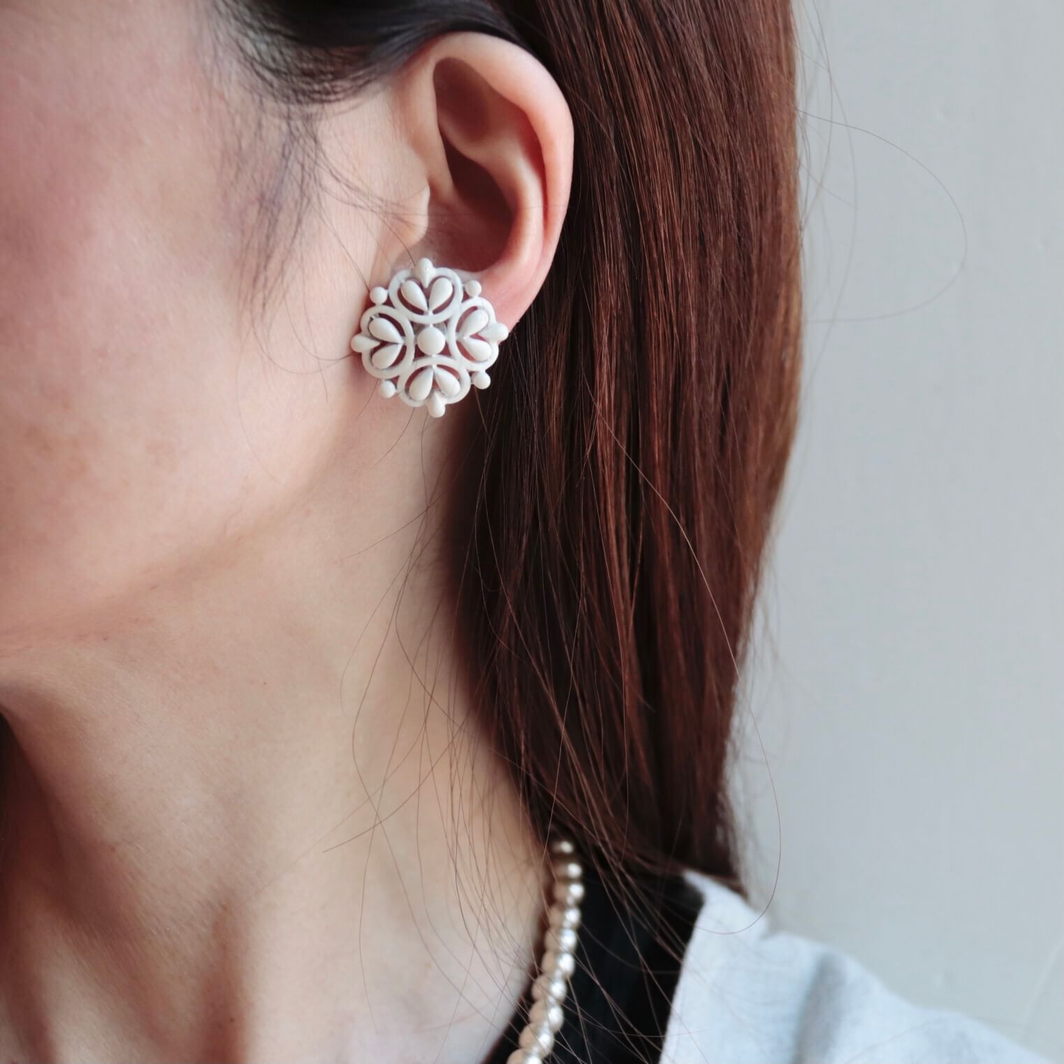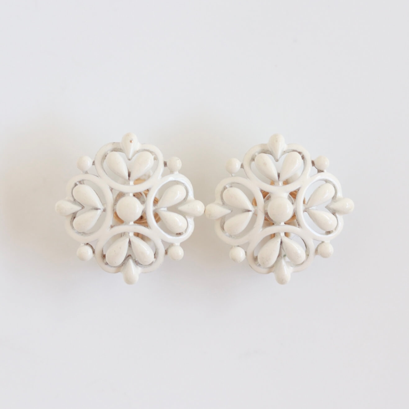 ヴィンテージ 「トリファリ」エナメルイヤリング ホワイト