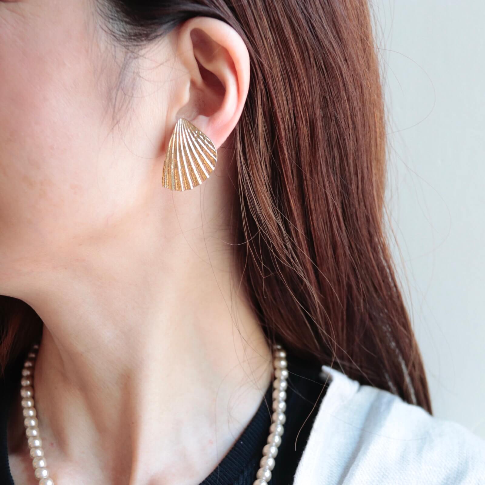 本物の貝殻のようなフォルムが、ゴールドトーンメタルで表現されたシンプルで美しいデザイン。