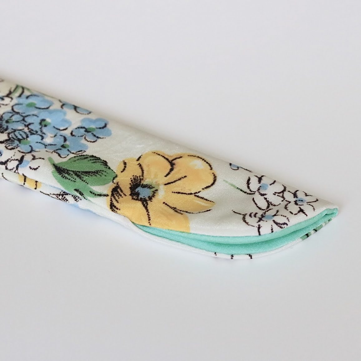 扇子カバーは1940年代のヴィンテージスカーフの生地で作られています。