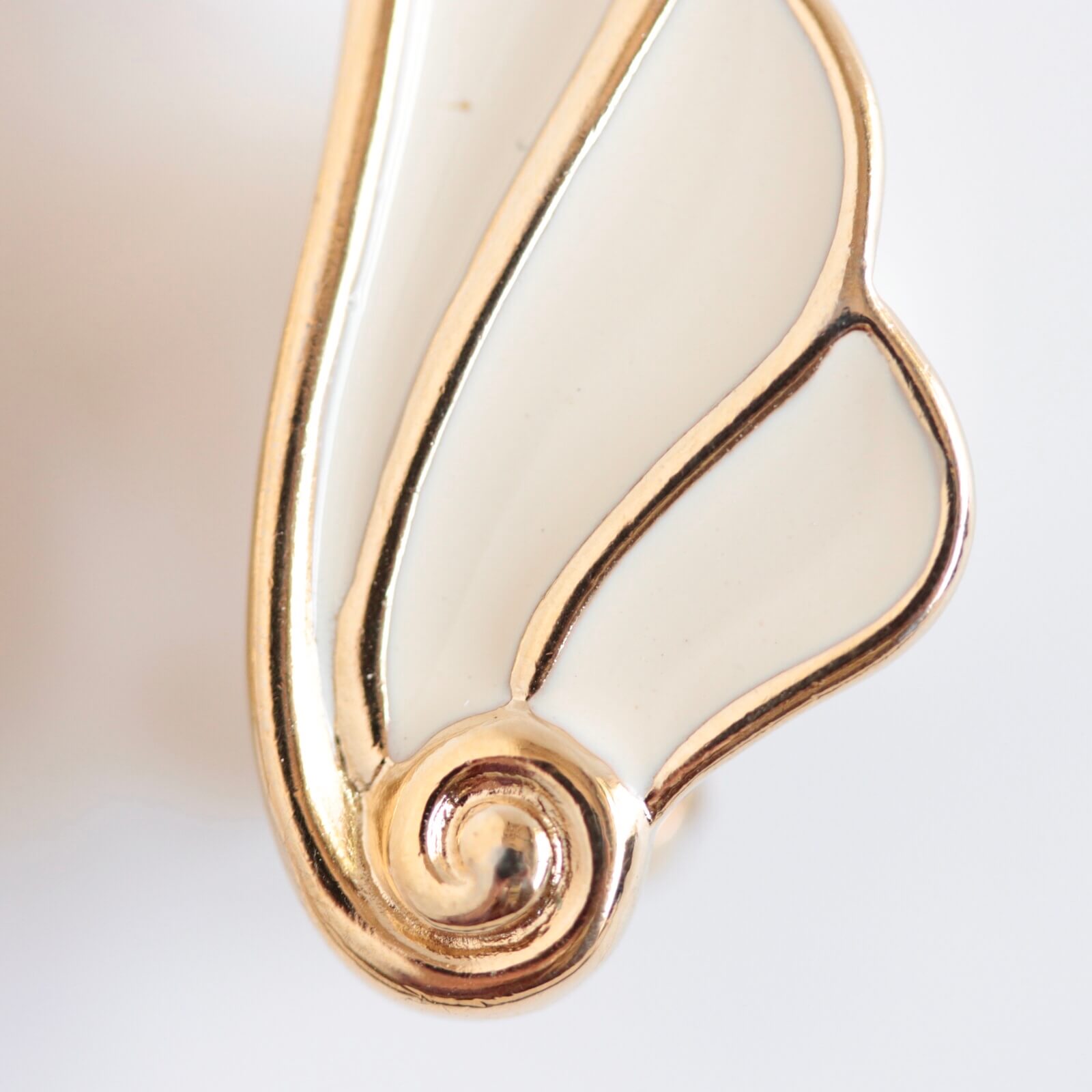 流れるようなゴールドのラインが優雅な動きを見せ、オフホワイトのエナメルがゴールド部分を際立たせています。