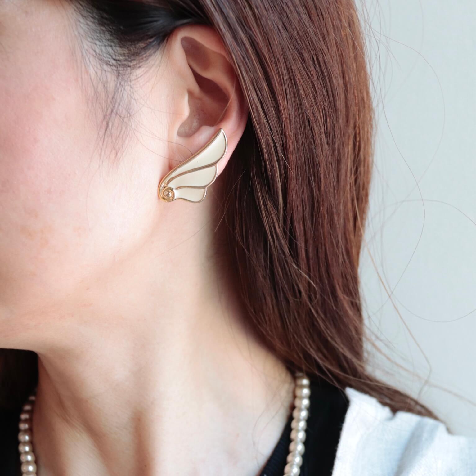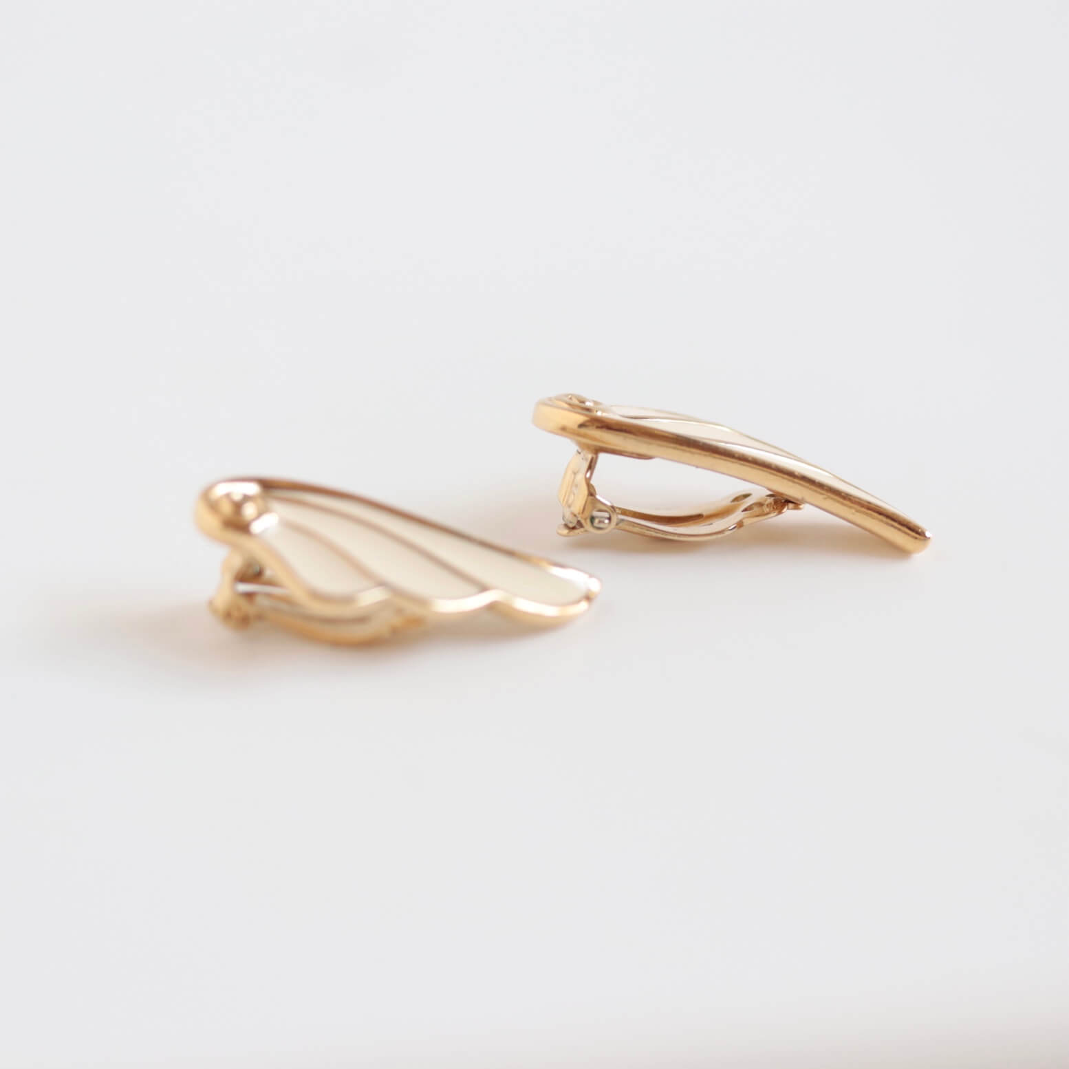 ヴィンテージ 「トリファリ」フェザー イヤリング ホワイト