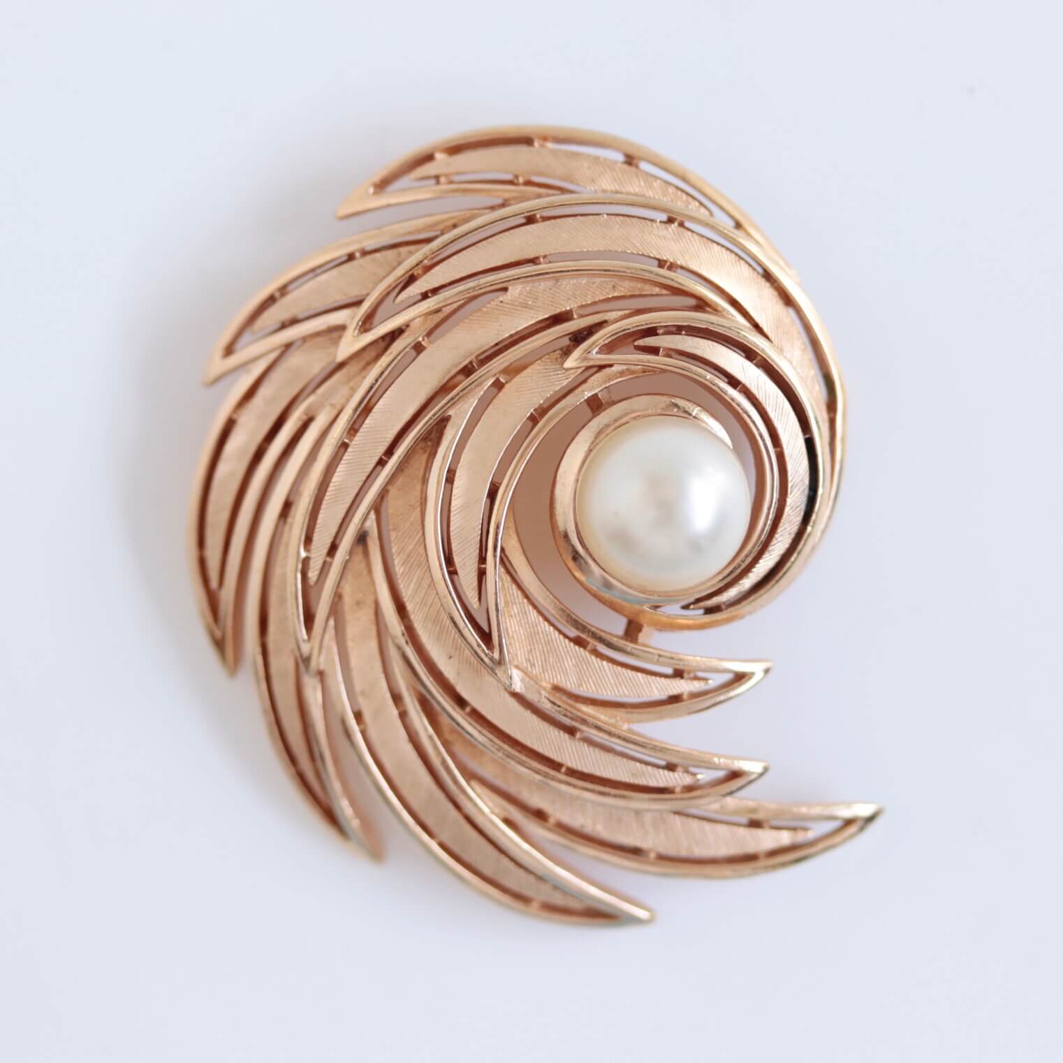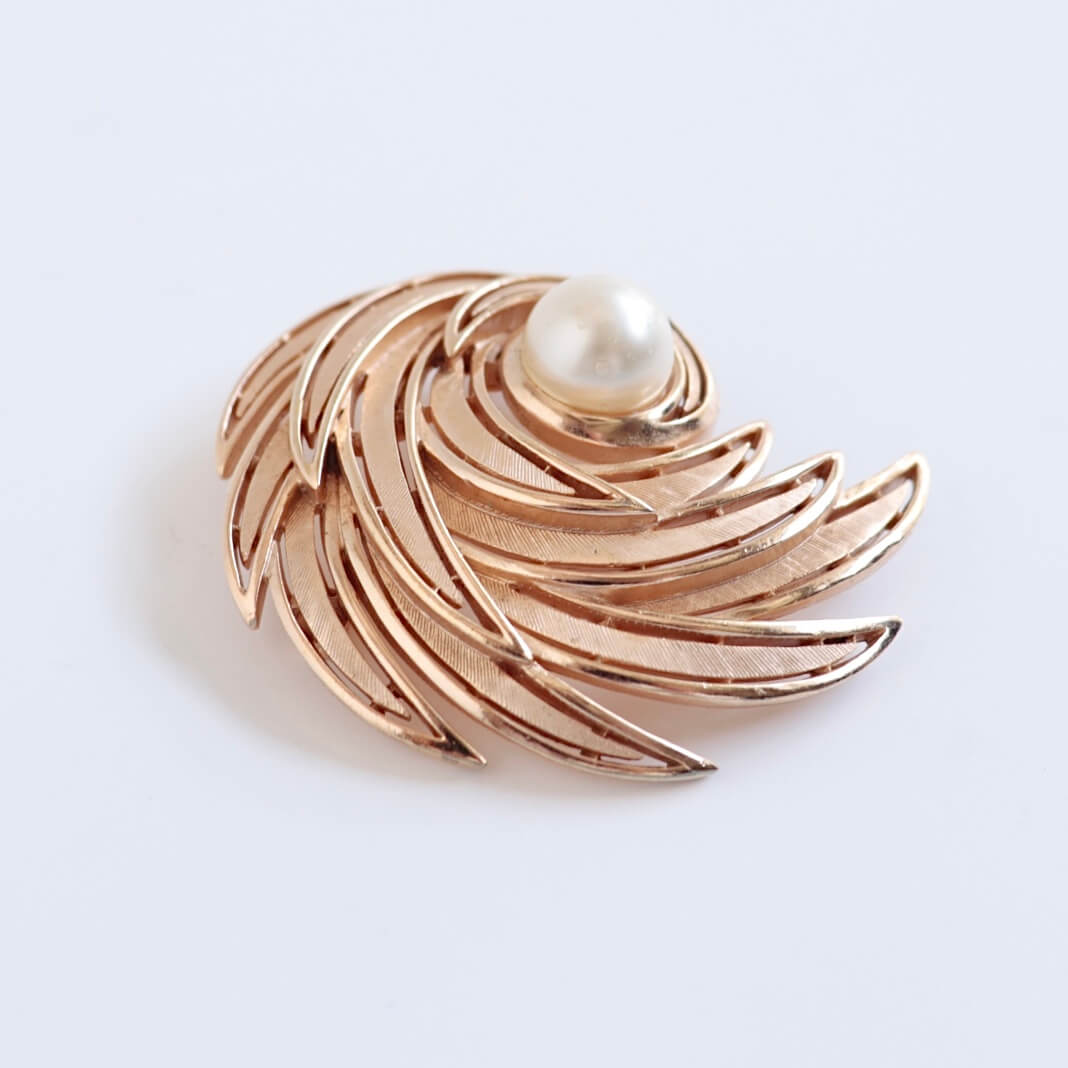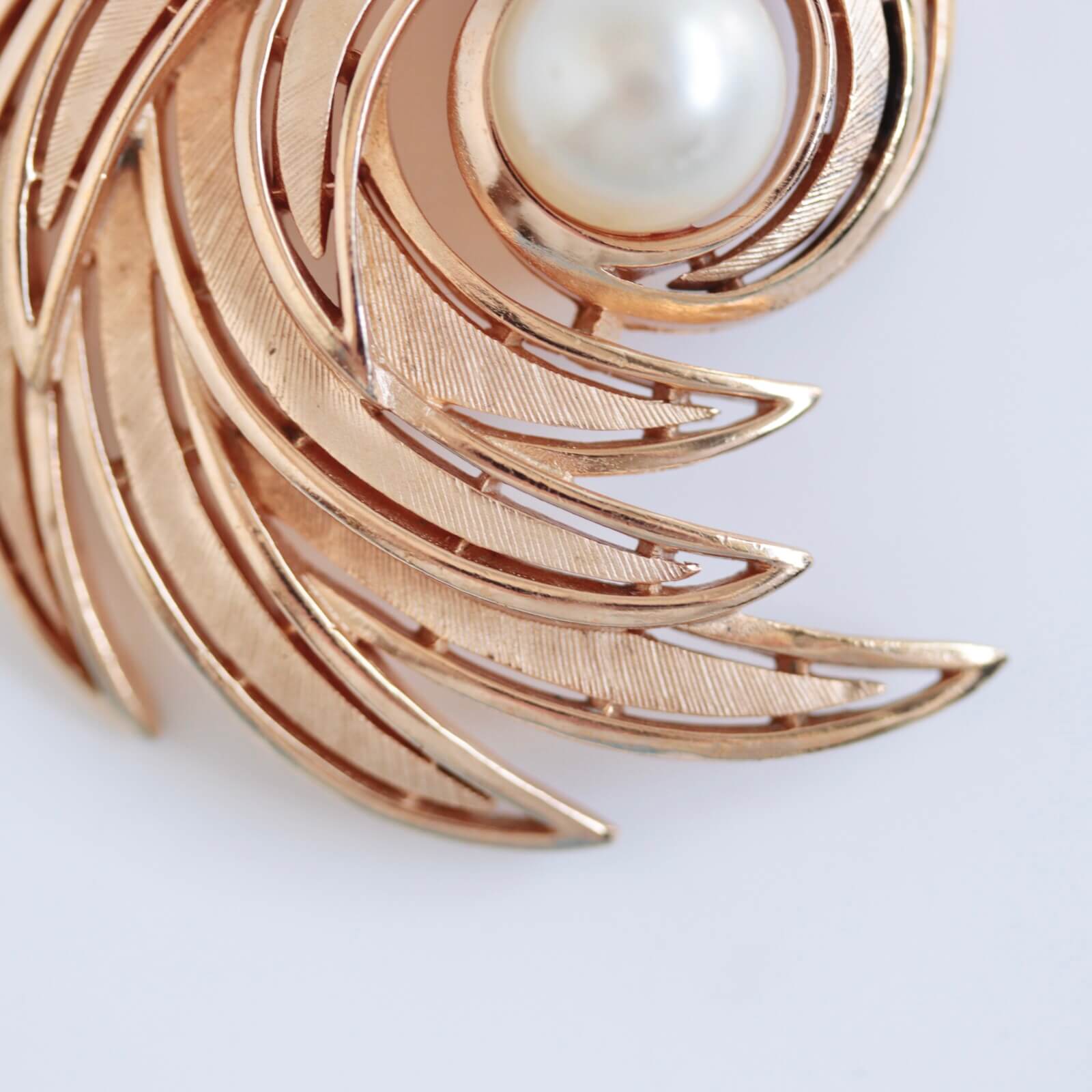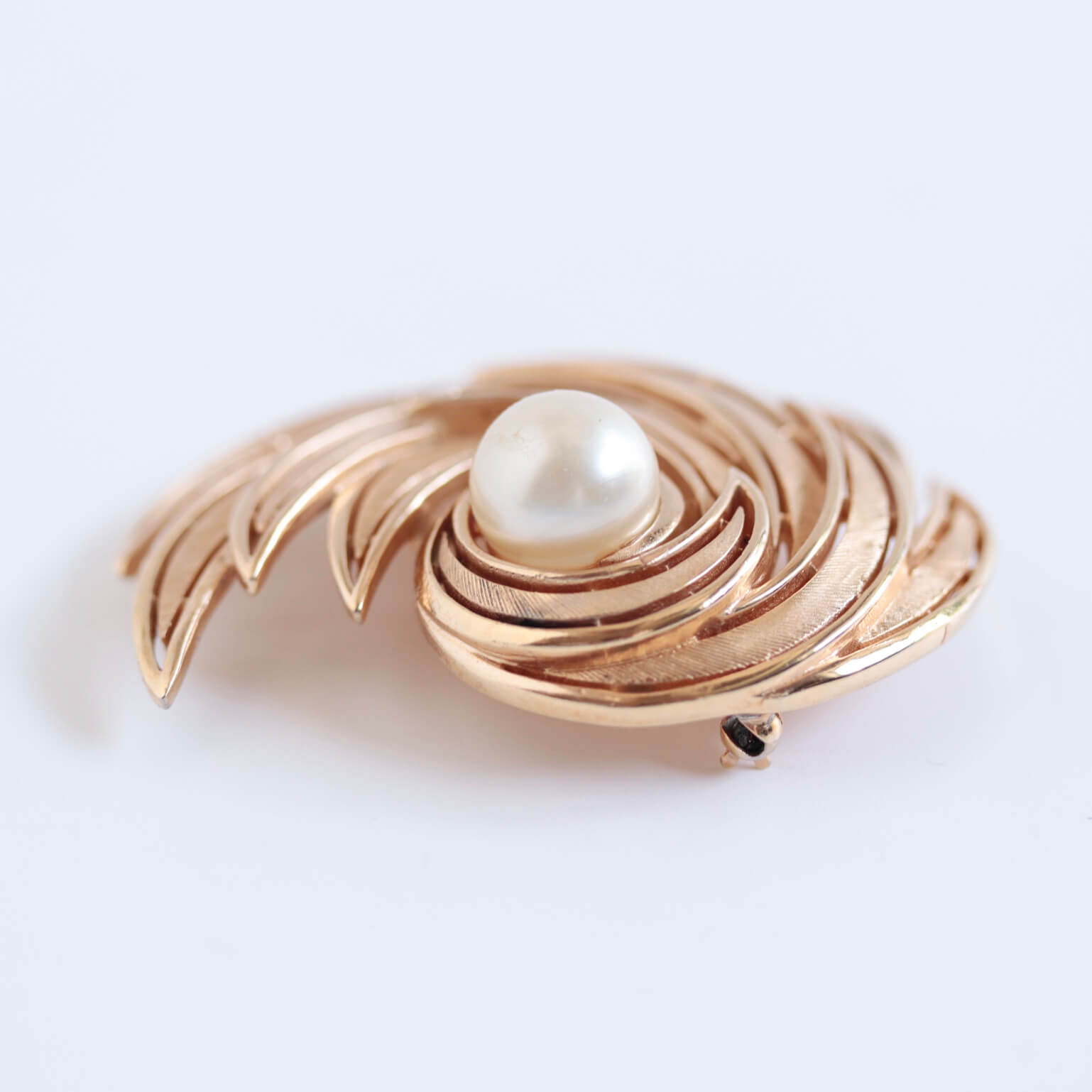 センターにセットされたパールをリーフが囲むようデザインされたブローチ。