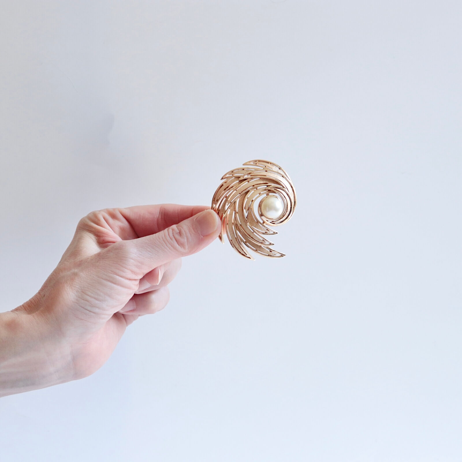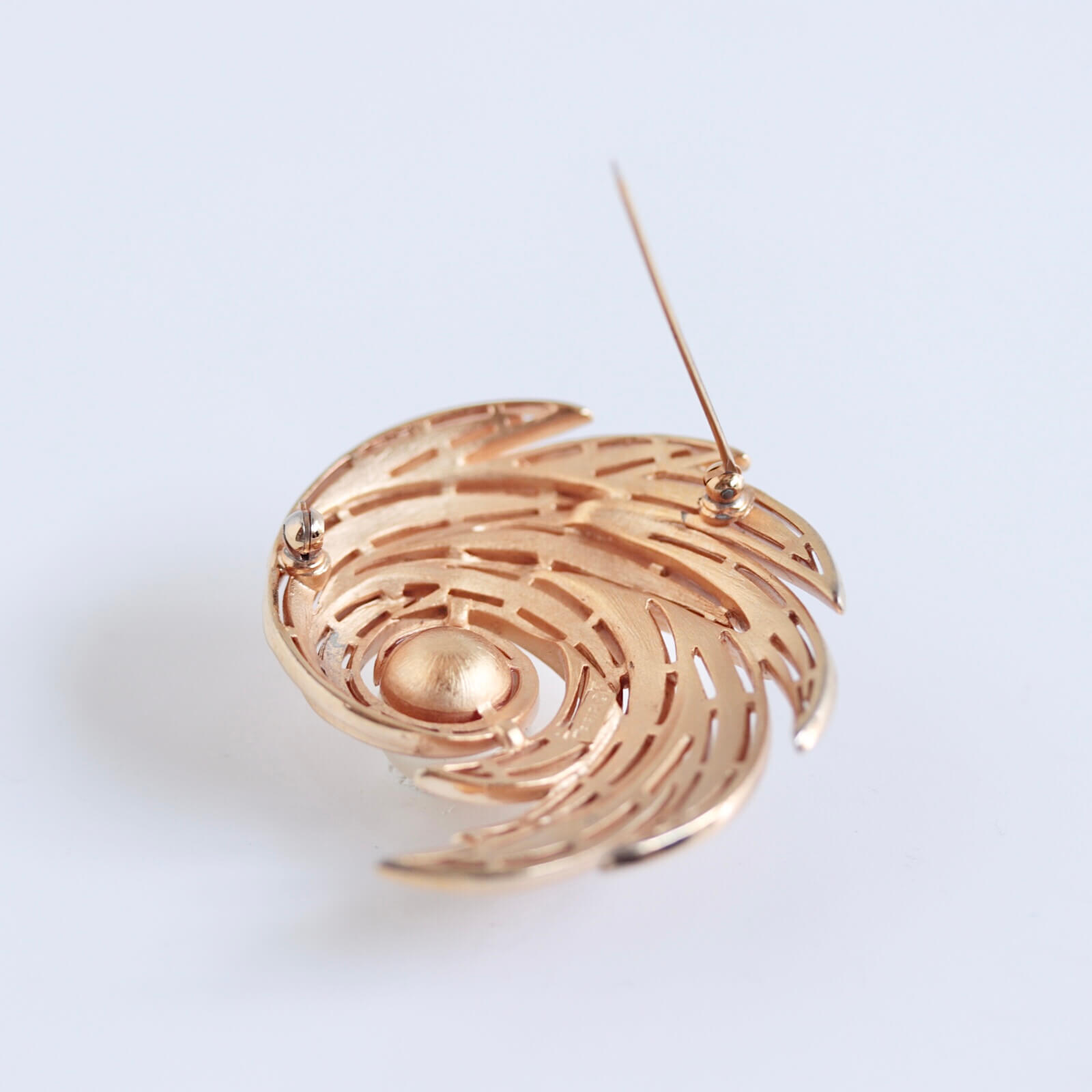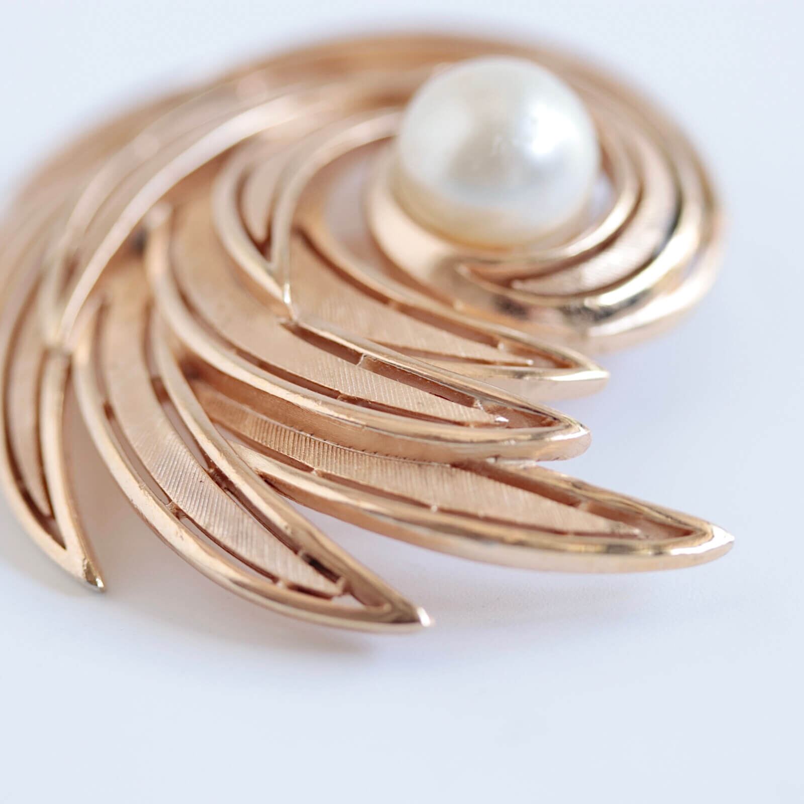 センターにセットされたパールをリーフが囲むようデザインされたブローチ。