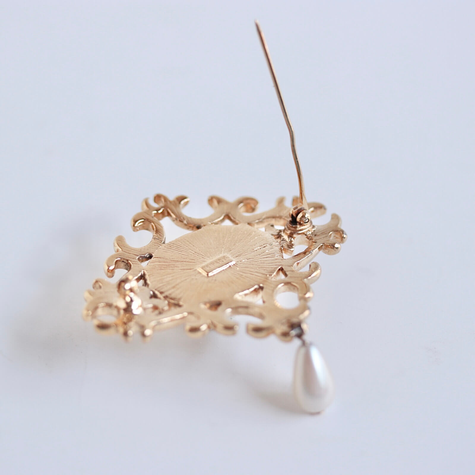 少しクラシカルで上品な雰囲気をまとったこのブローチは、いつものコーディネートにクラス感を与えてくれこと間違いなしです。