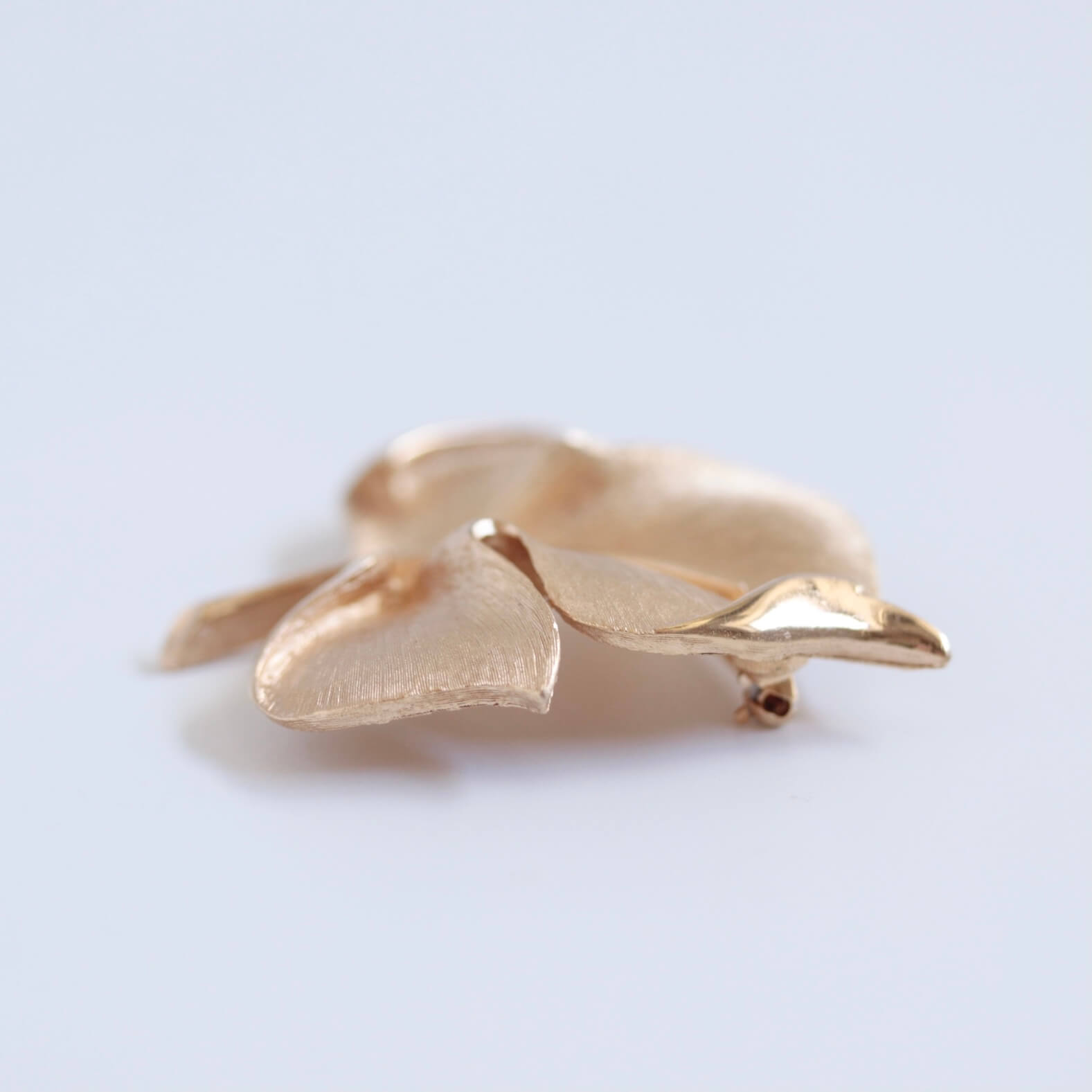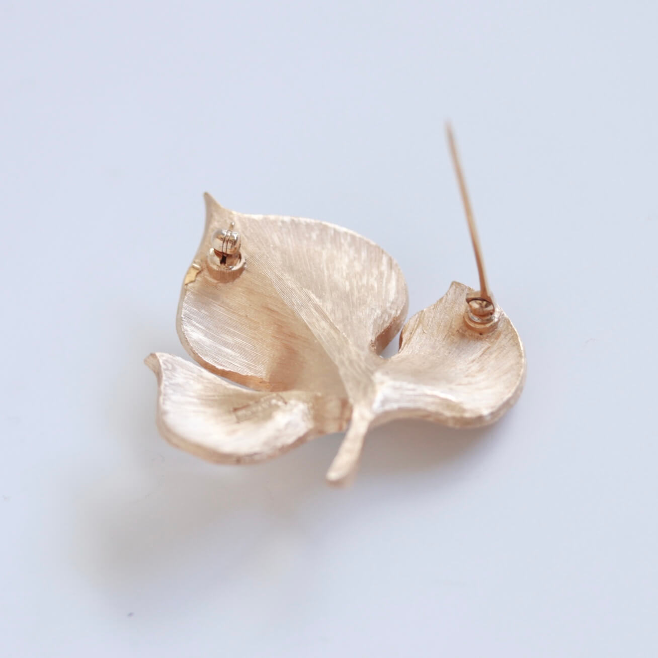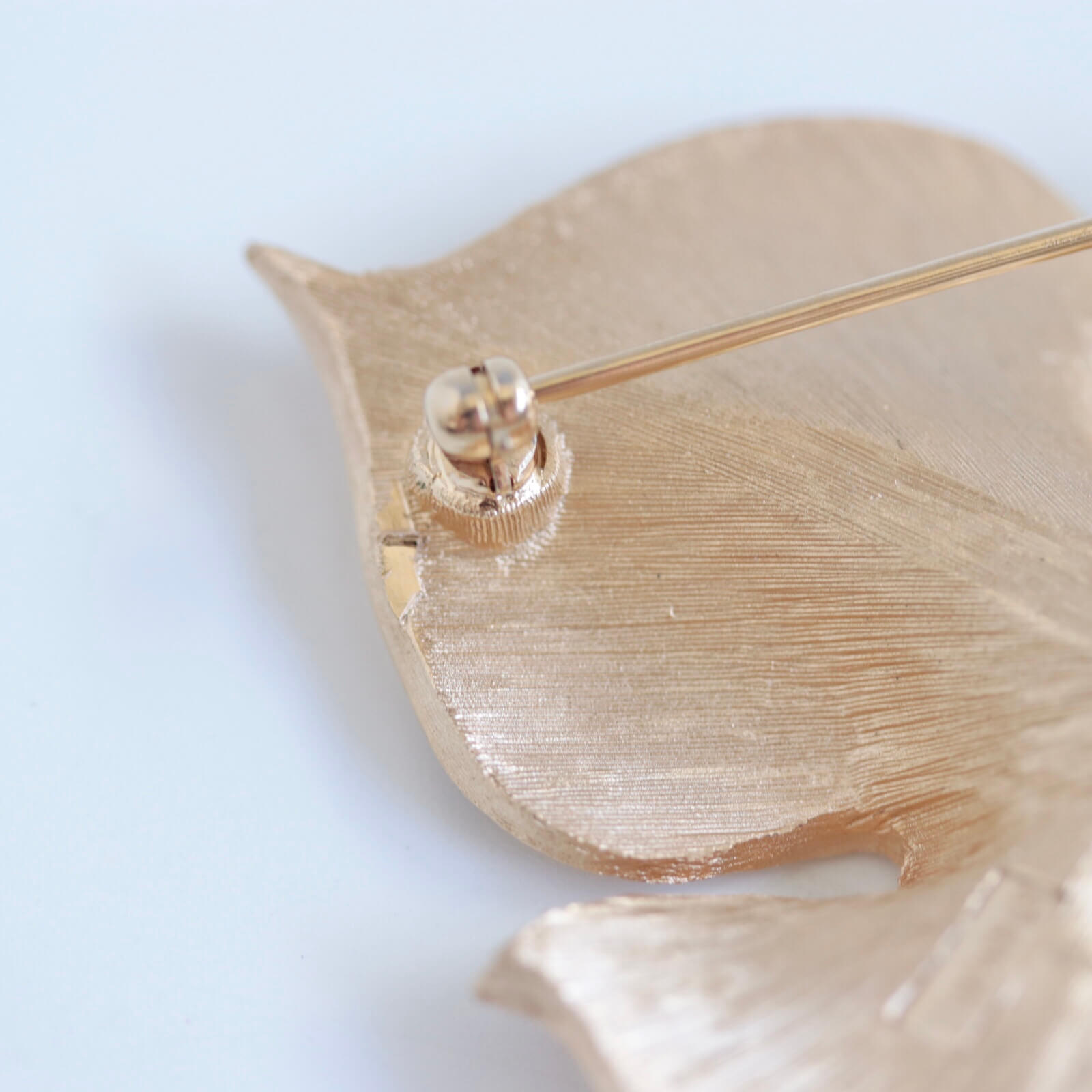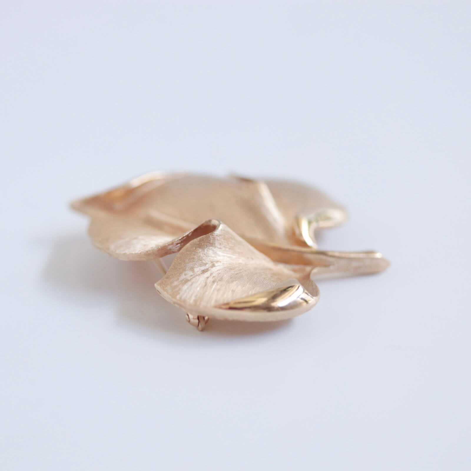 いかにも風に揺れているような葉が軽やかな印象で、エレガントで上品なブローチ。