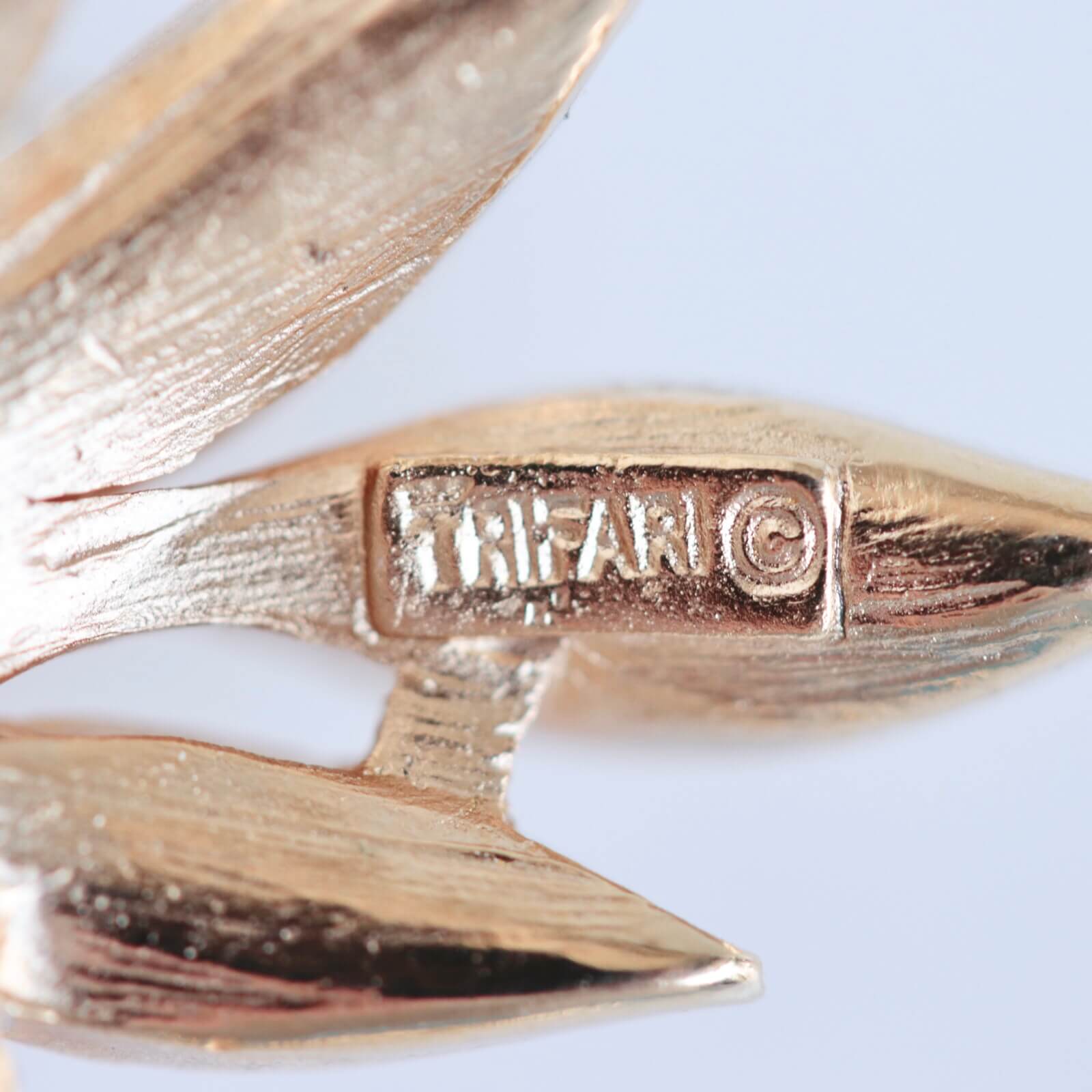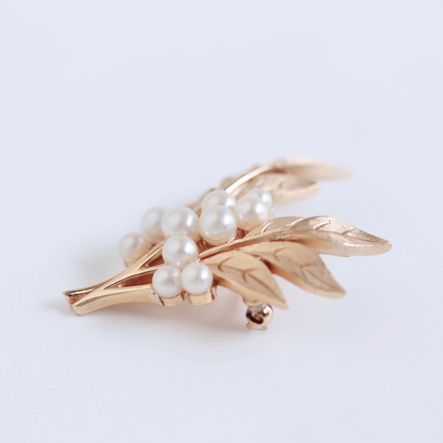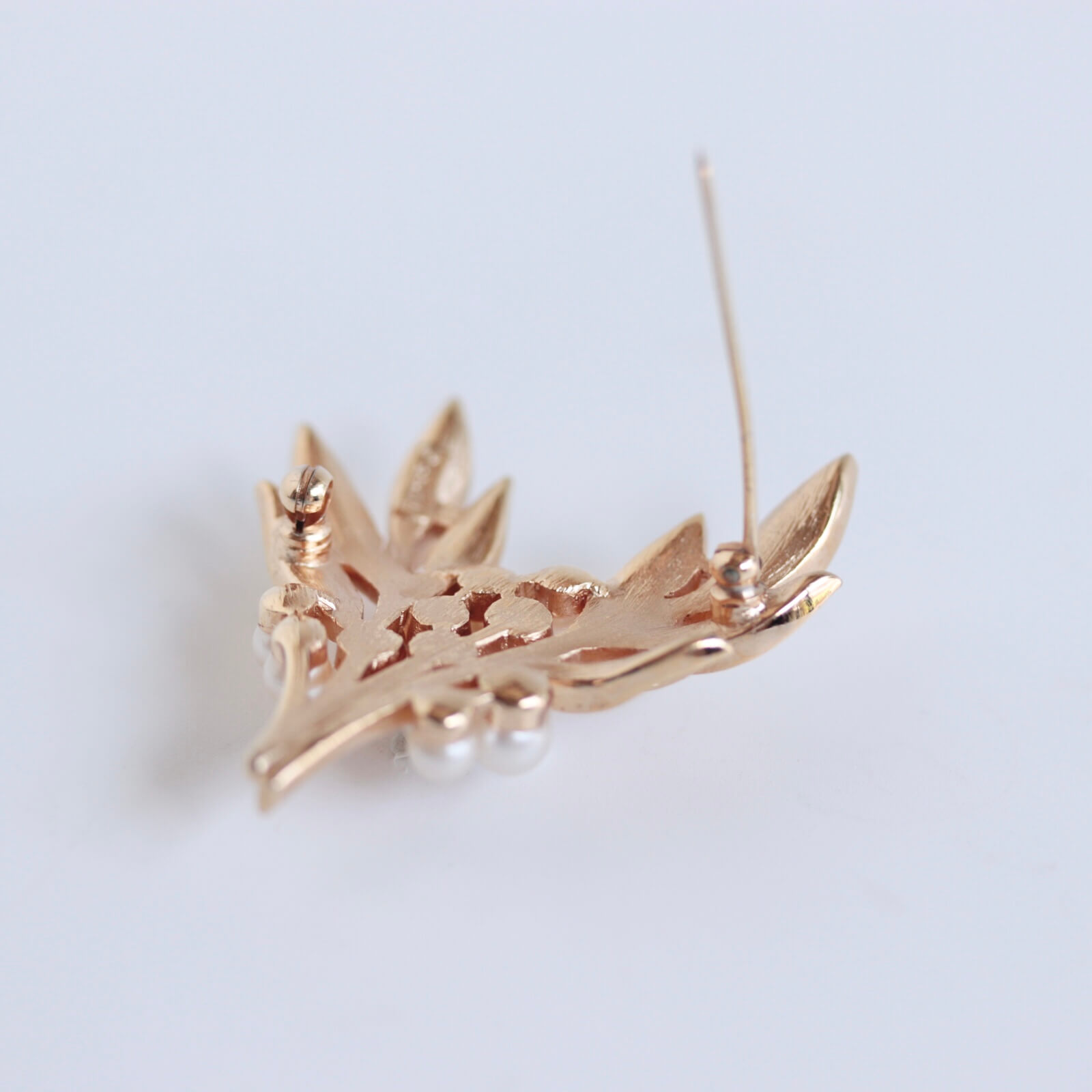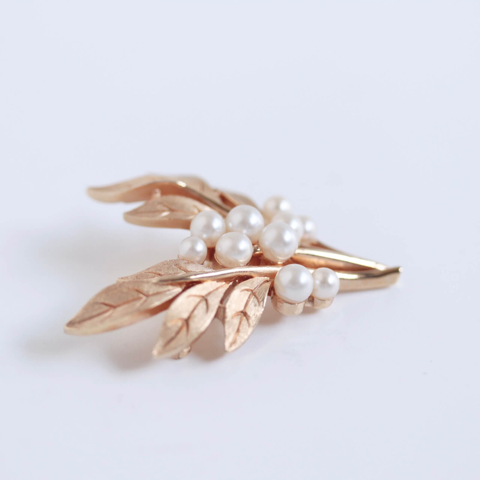 ヴィンテージ 「トリファリ」リーフ パール ブローチ ゴールド