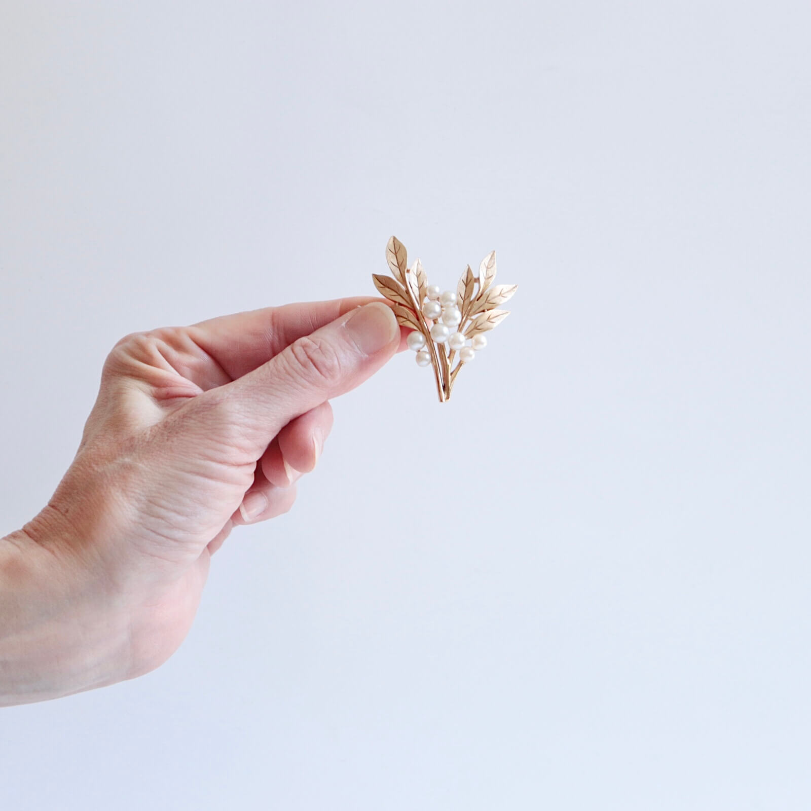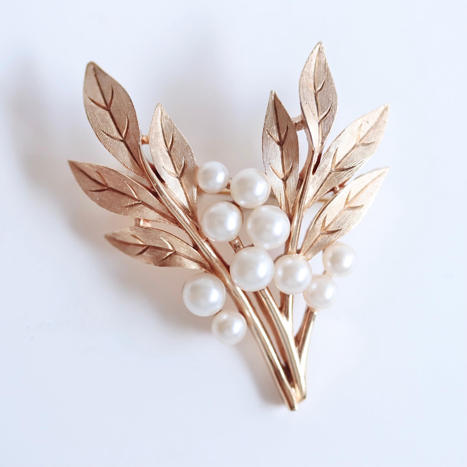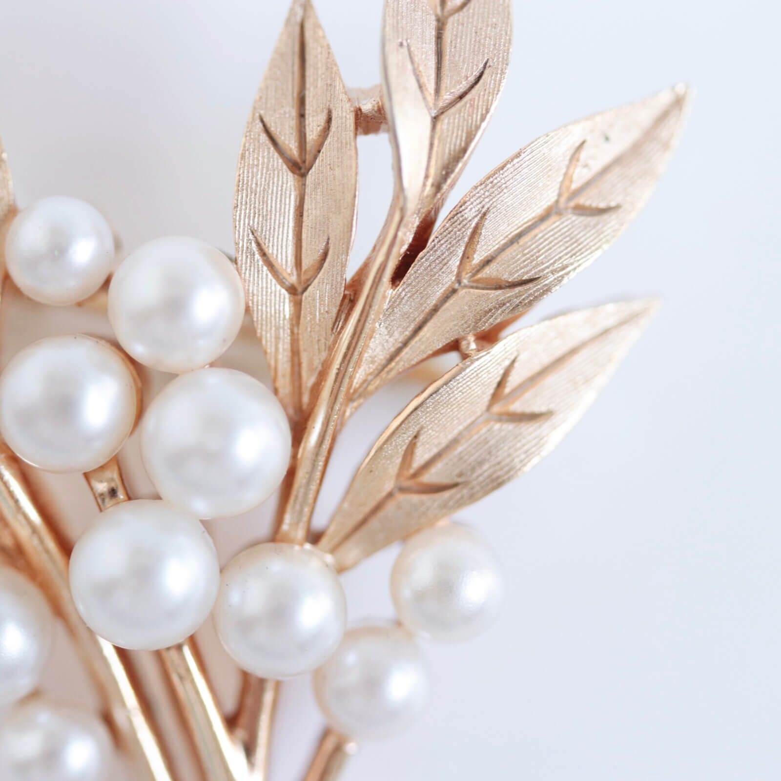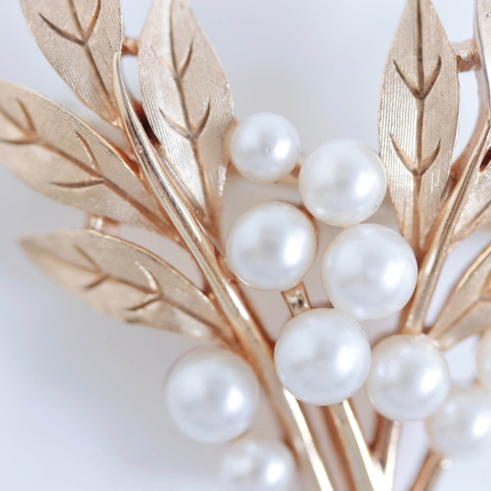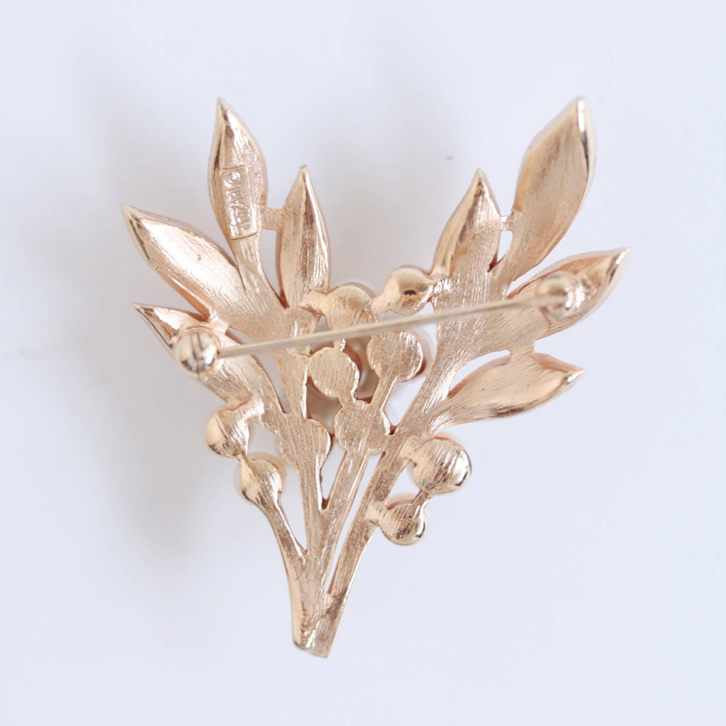 ヴィンテージ 「トリファリ」リーフ パール ブローチ ゴールド