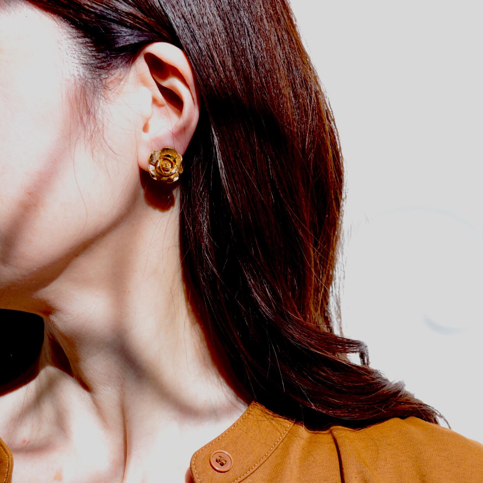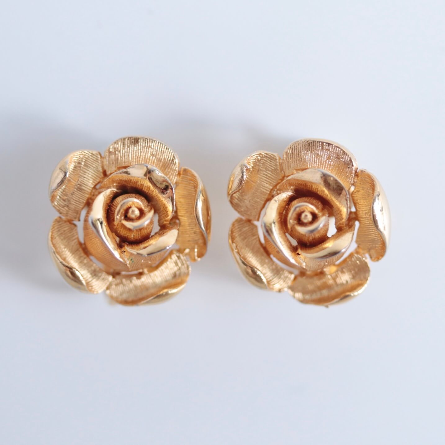 ヴィンテージ 「トリファリ」バラ イヤリング ゴールド