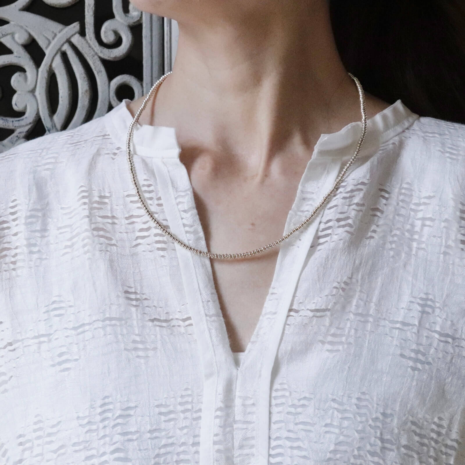 シンプルなネックレスは大変合わせやすく、デイリーユースにも最適です。