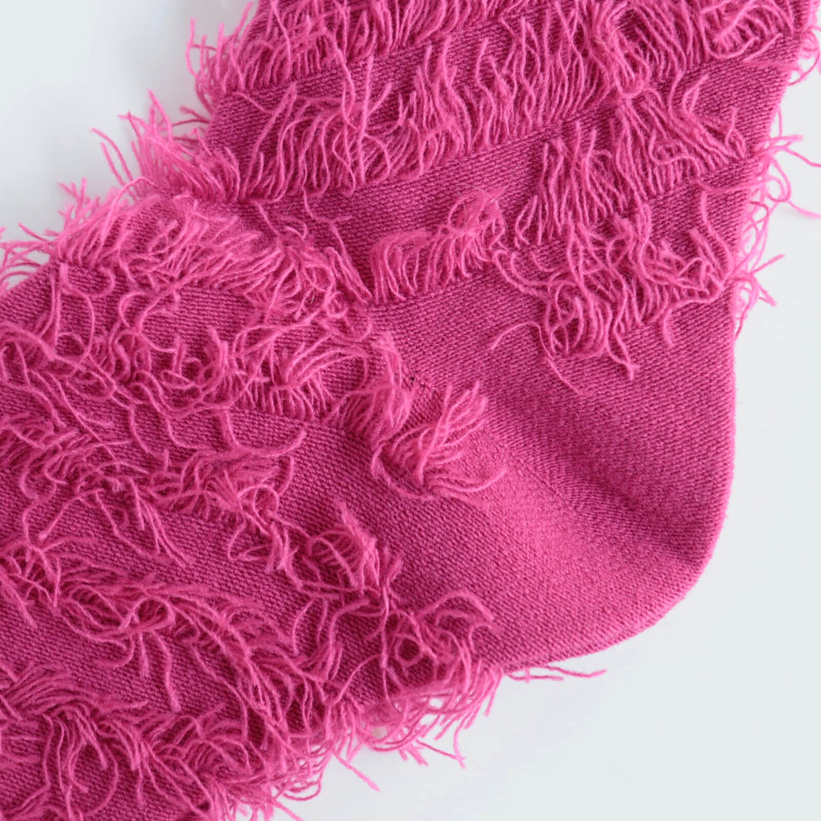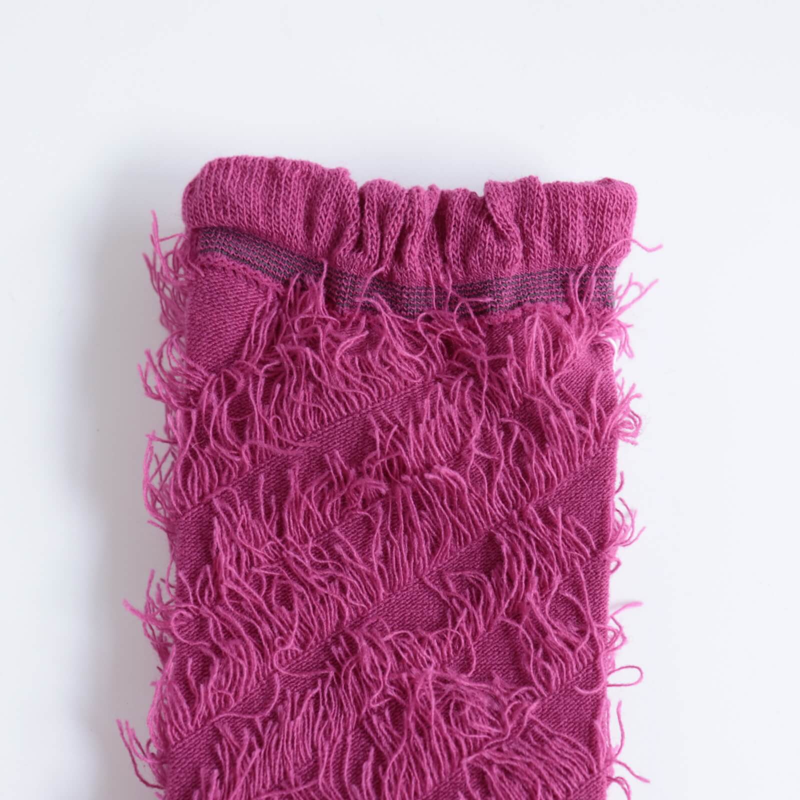 毛足の長いフワフワとしたフリンジが華やかさをプラスします。