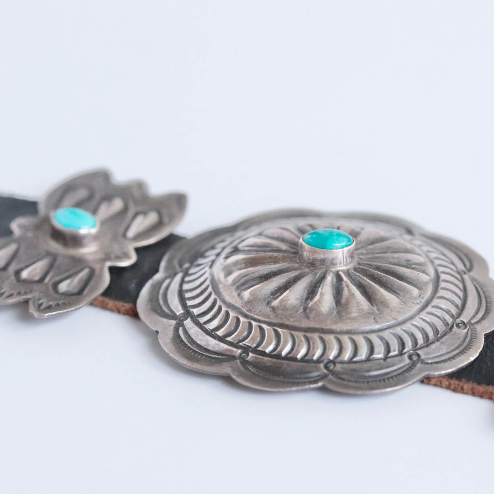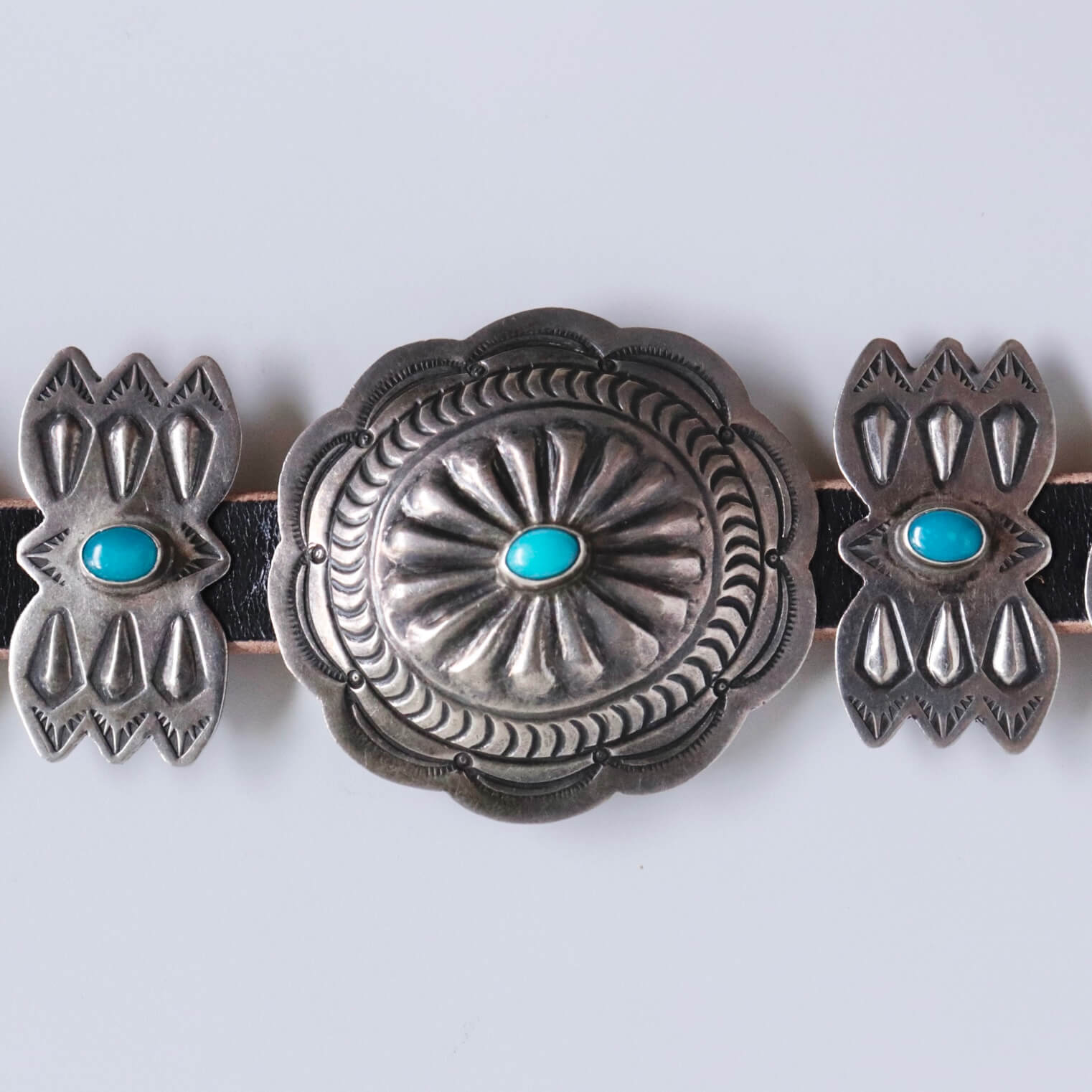 バックルには多種のスタンプワークが施されていて、コンチョには巧みな技術が詰まっており、何処をとっても満足度の高いコンチョベルト。
