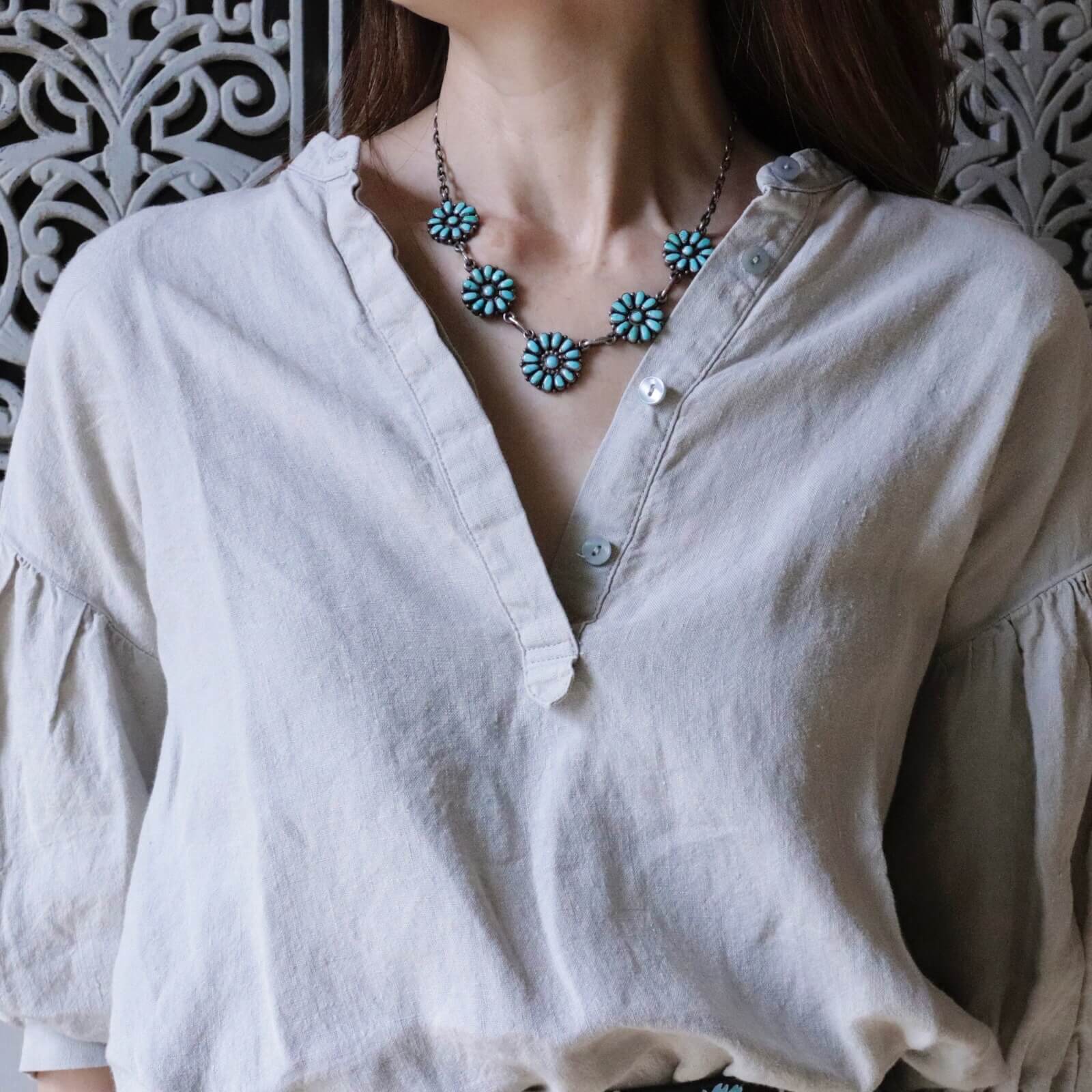ヴィンテージ ズニ フラワーネックレス