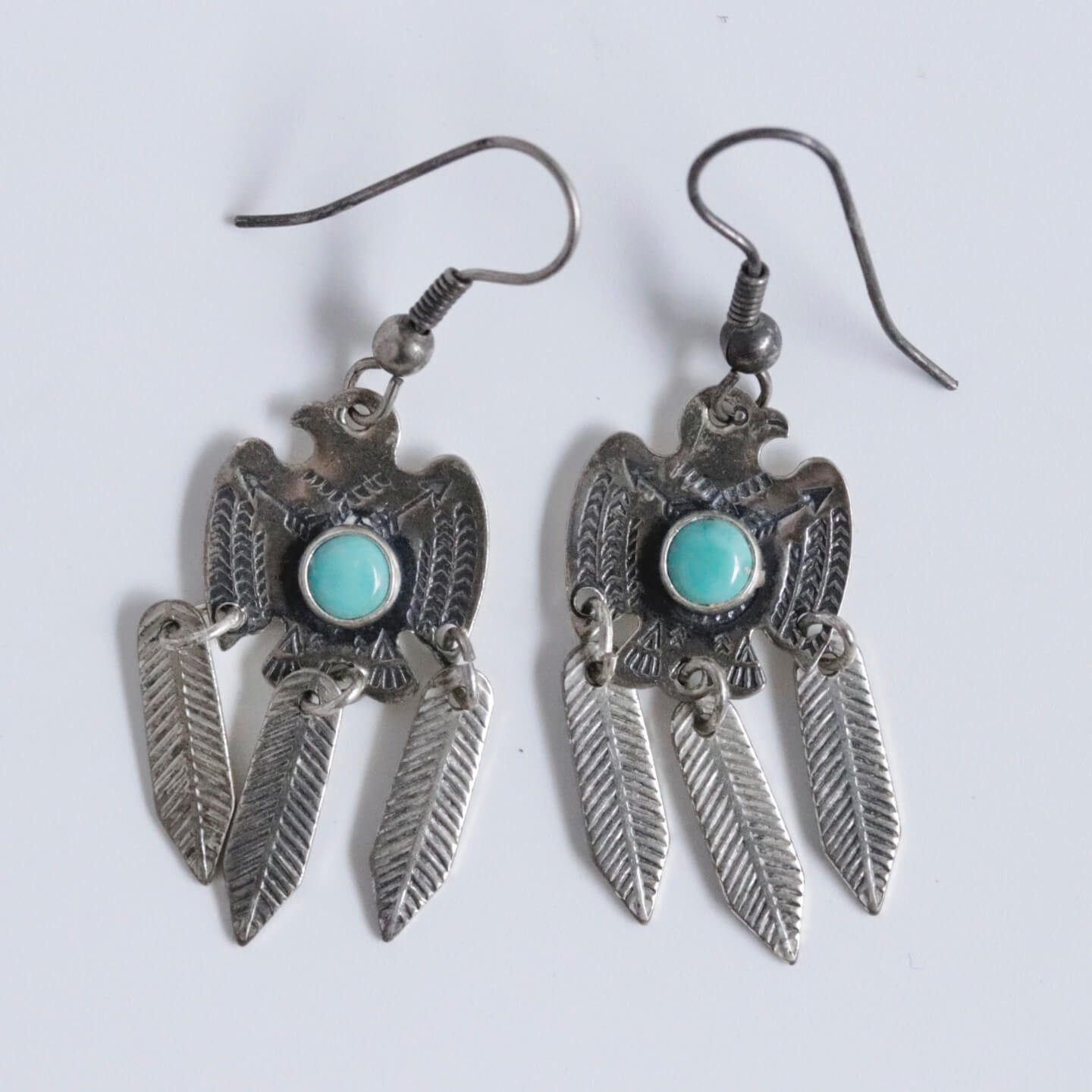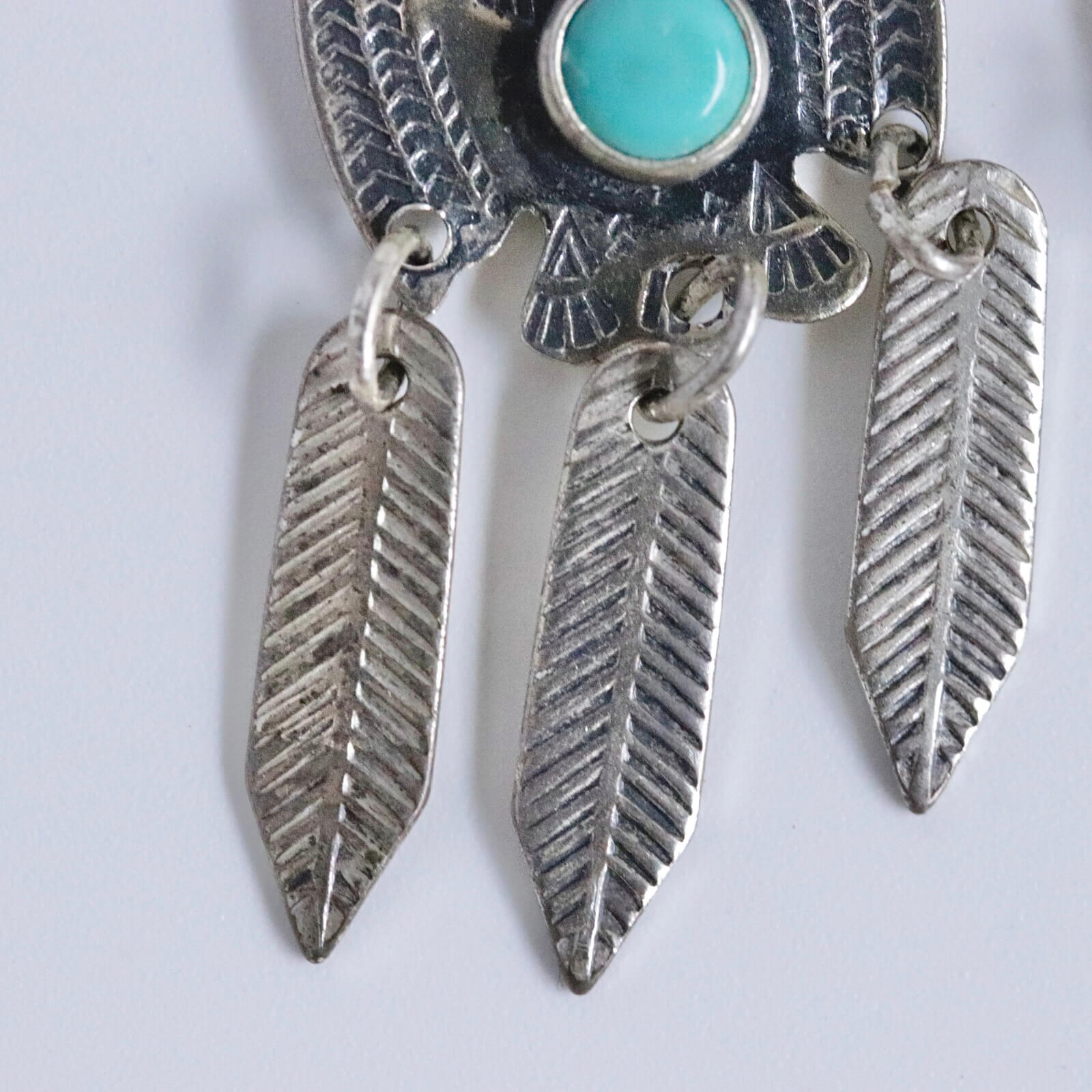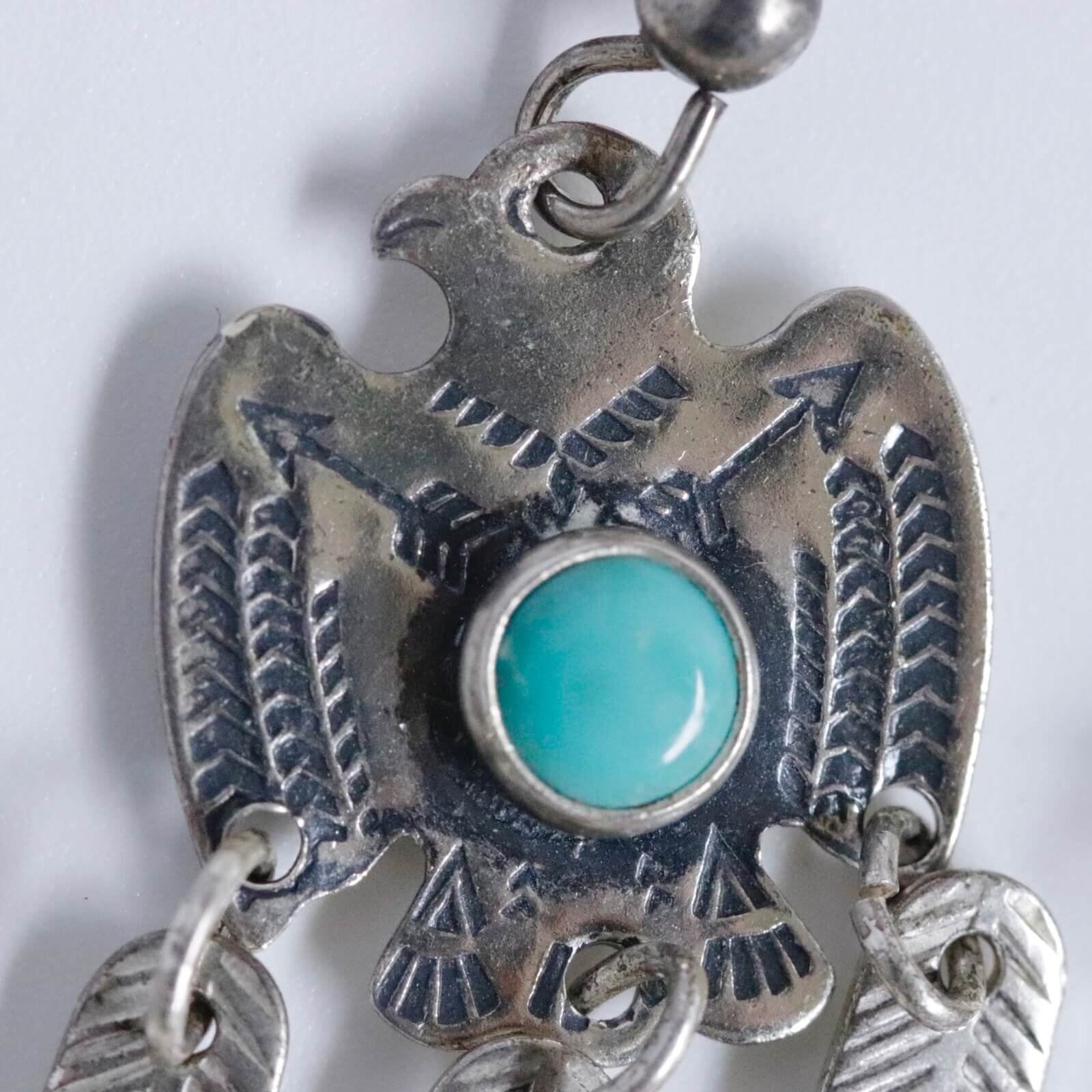 サンダーバードには細かなスタンプワークが施され、中央にラウンドシェイプのターコイズがセットされています。