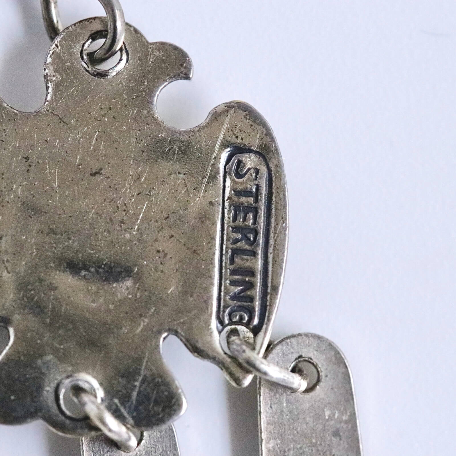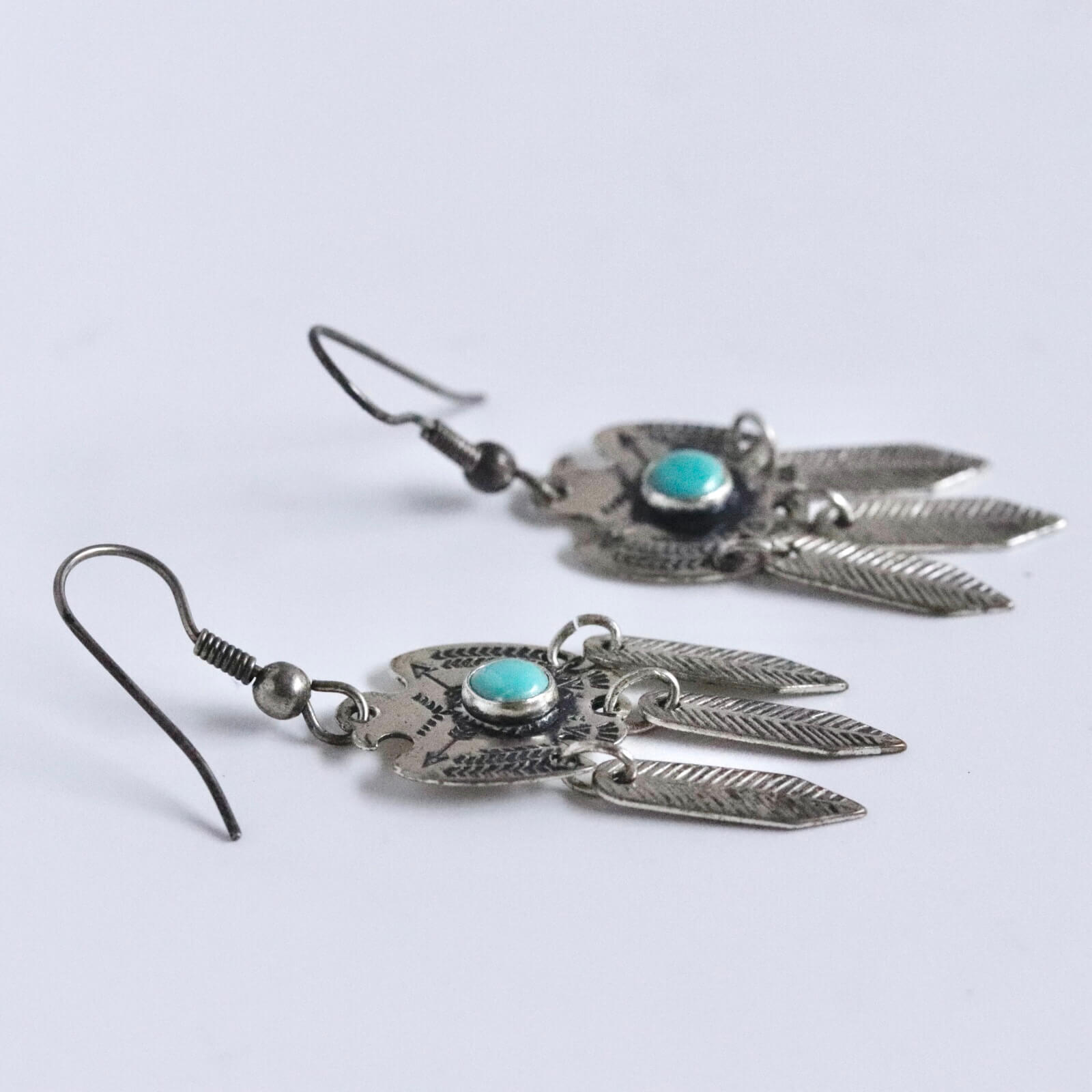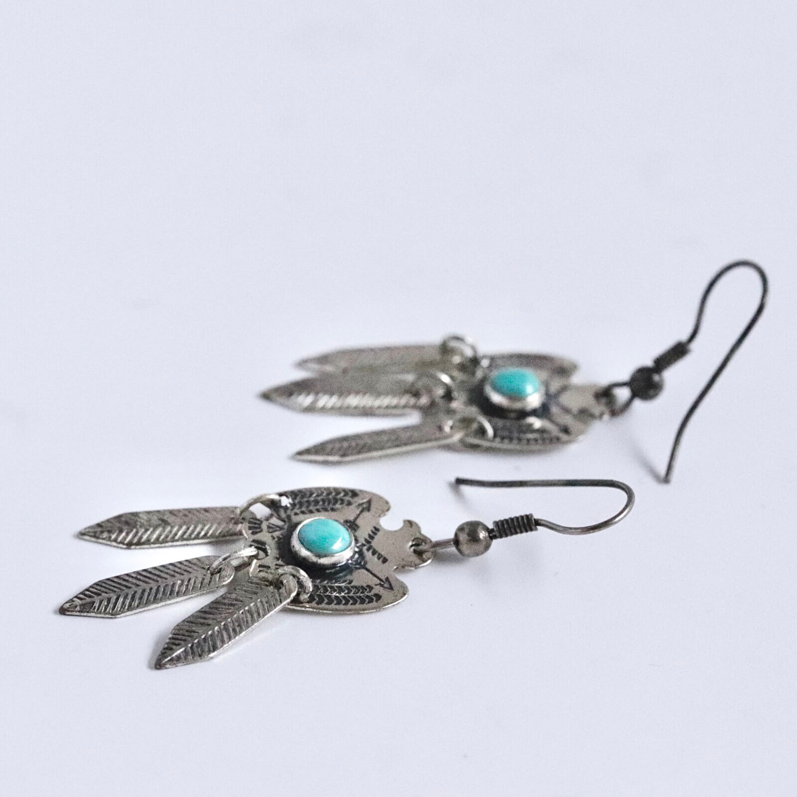 サンダーバードには細かなスタンプワークが施され、中央にラウンドシェイプのターコイズがセットされています。
