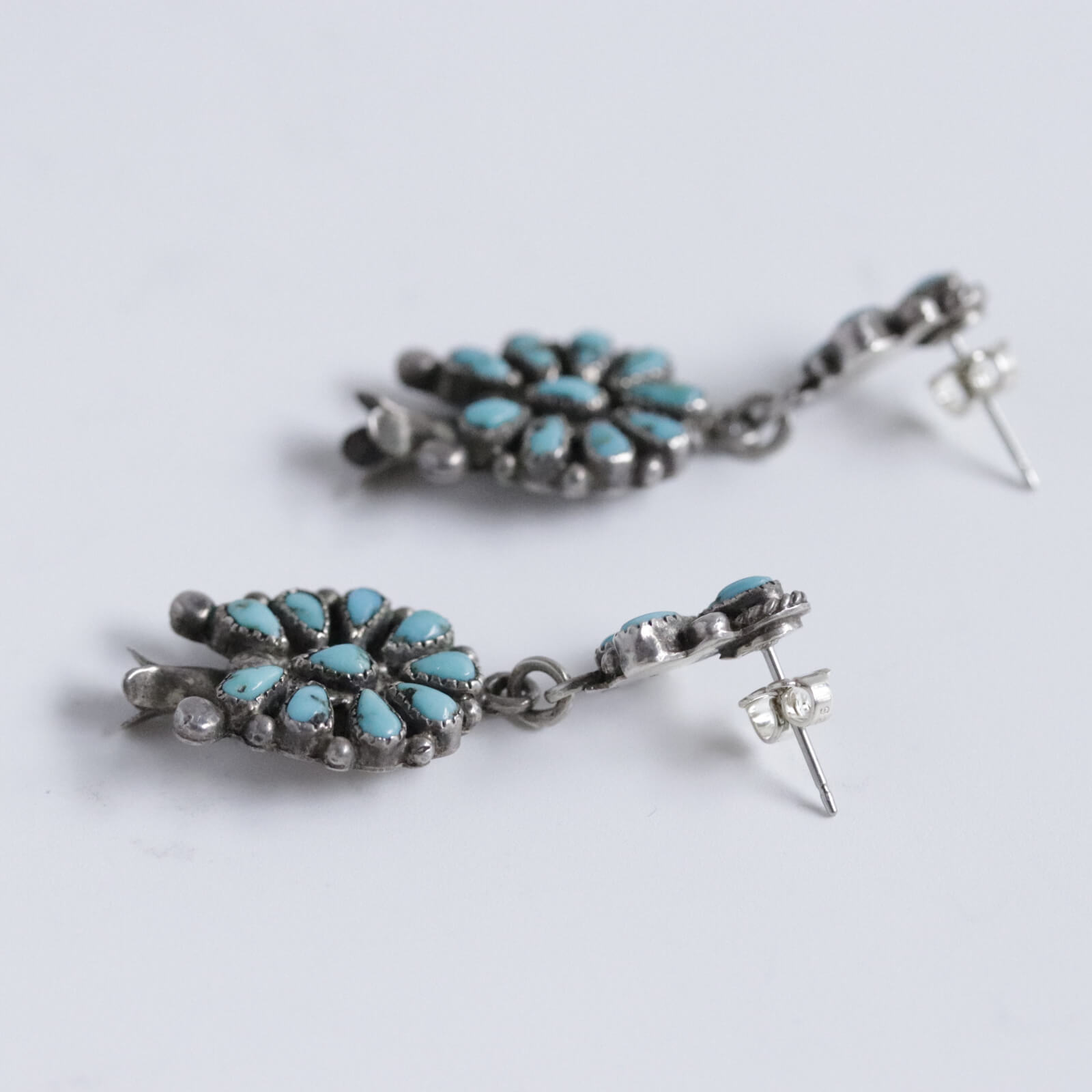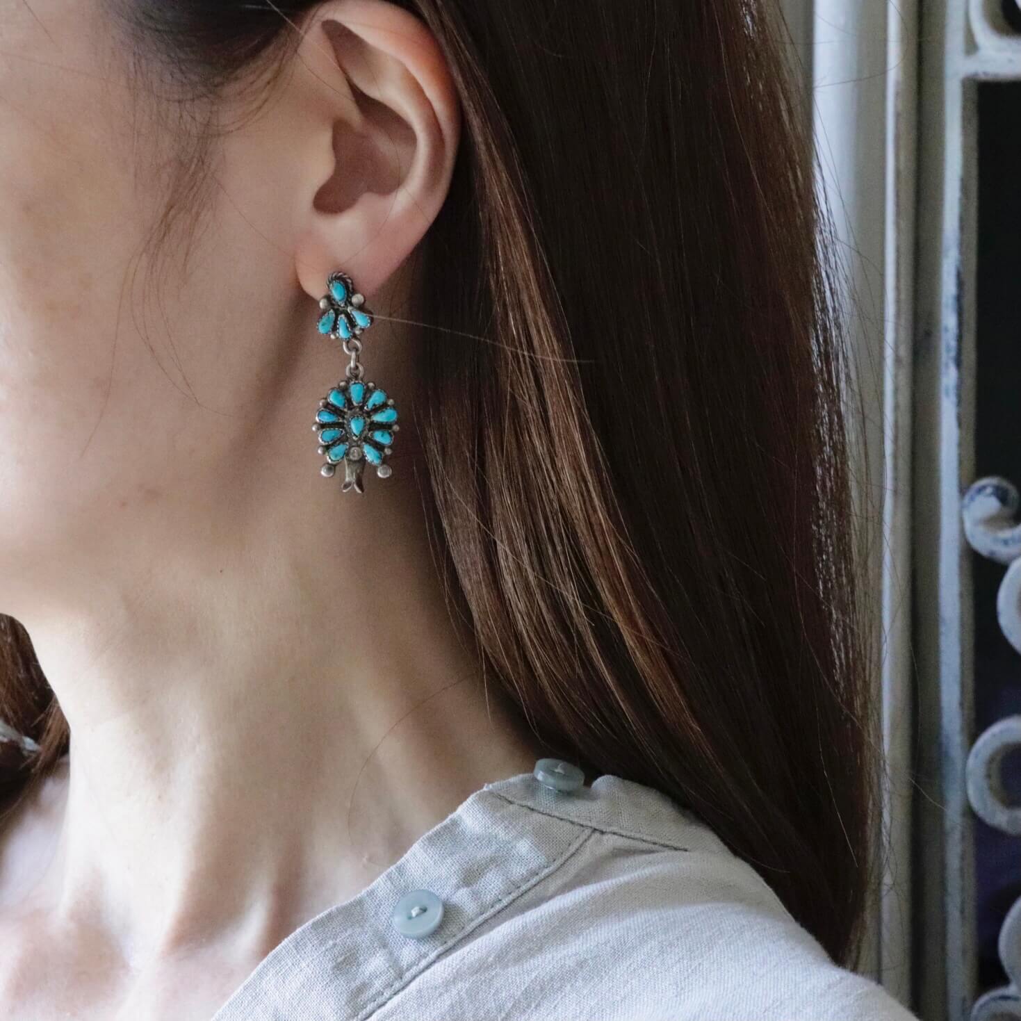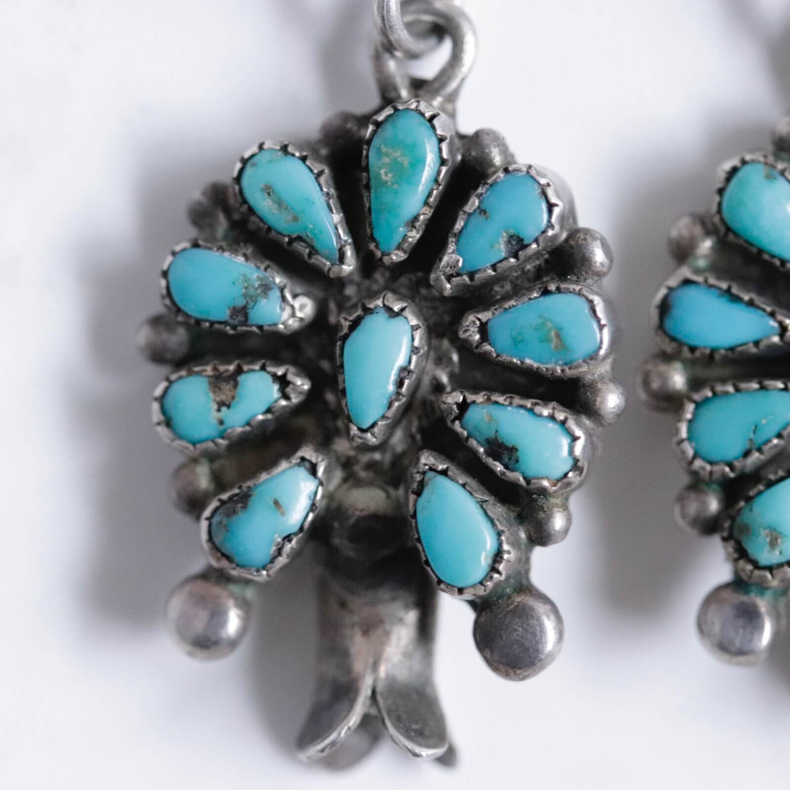 緻密な石の細工を得意とするズニ族の、1950年代頃のターコイズのピアス。