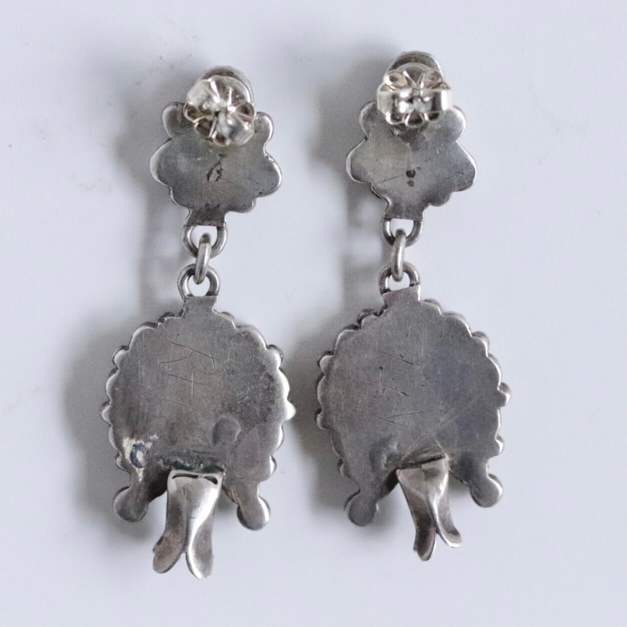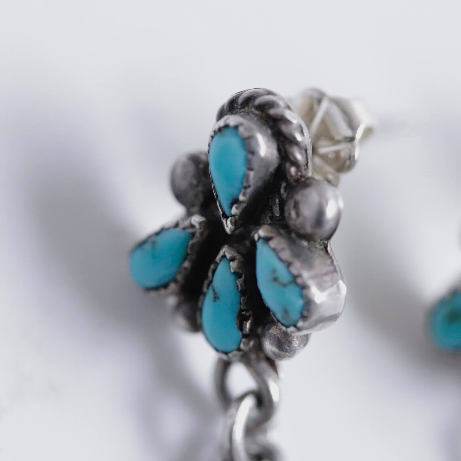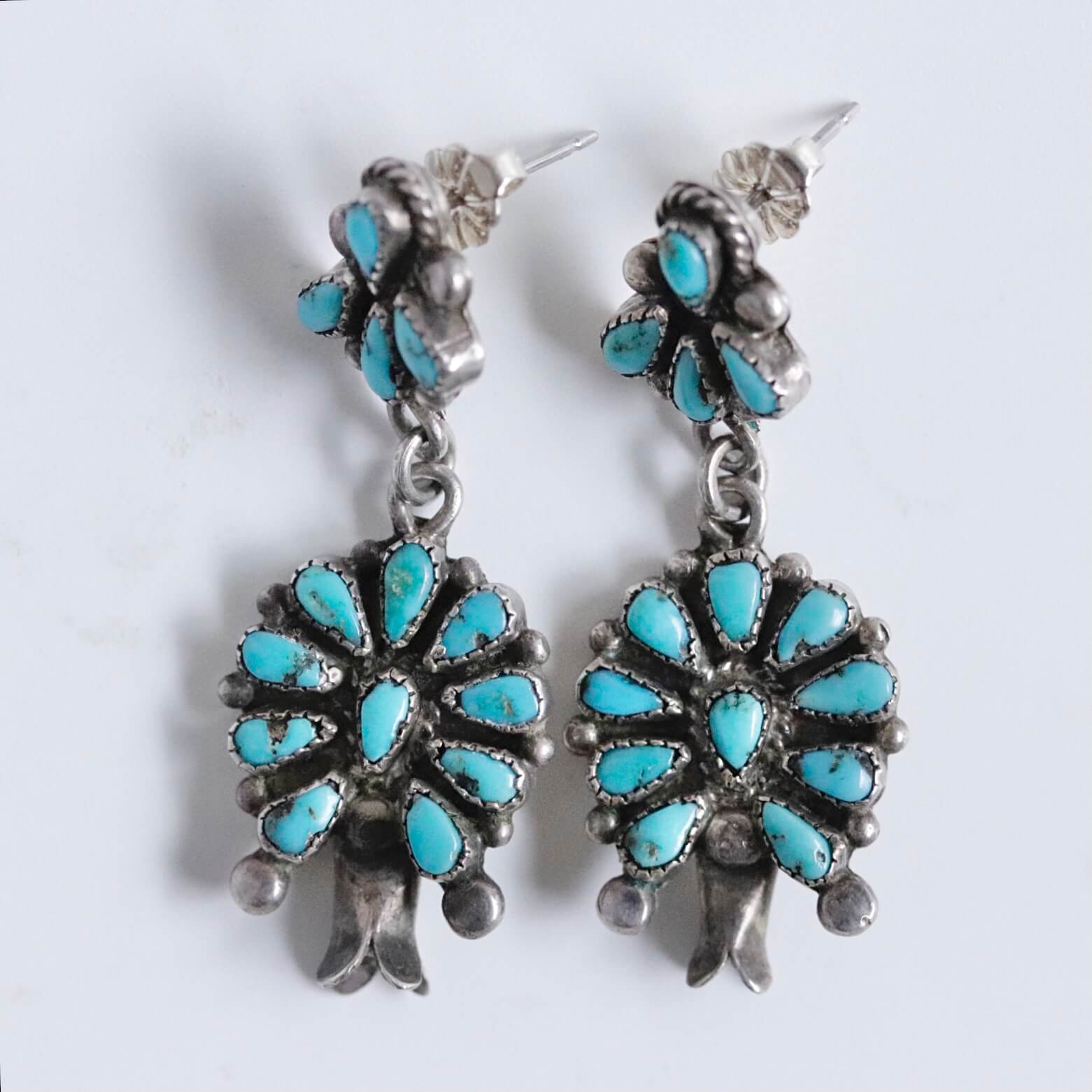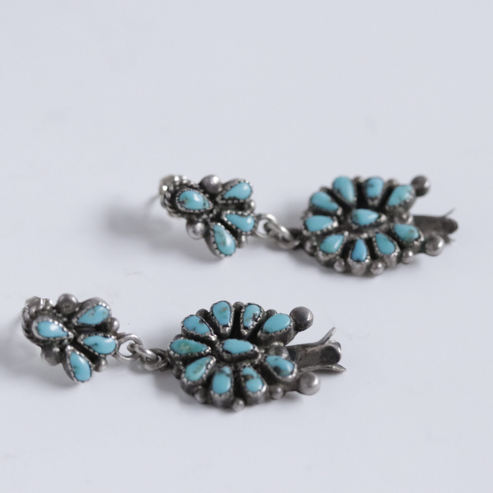 緻密な石の細工を得意とするズニ族の、1950年代頃のターコイズのピアス。