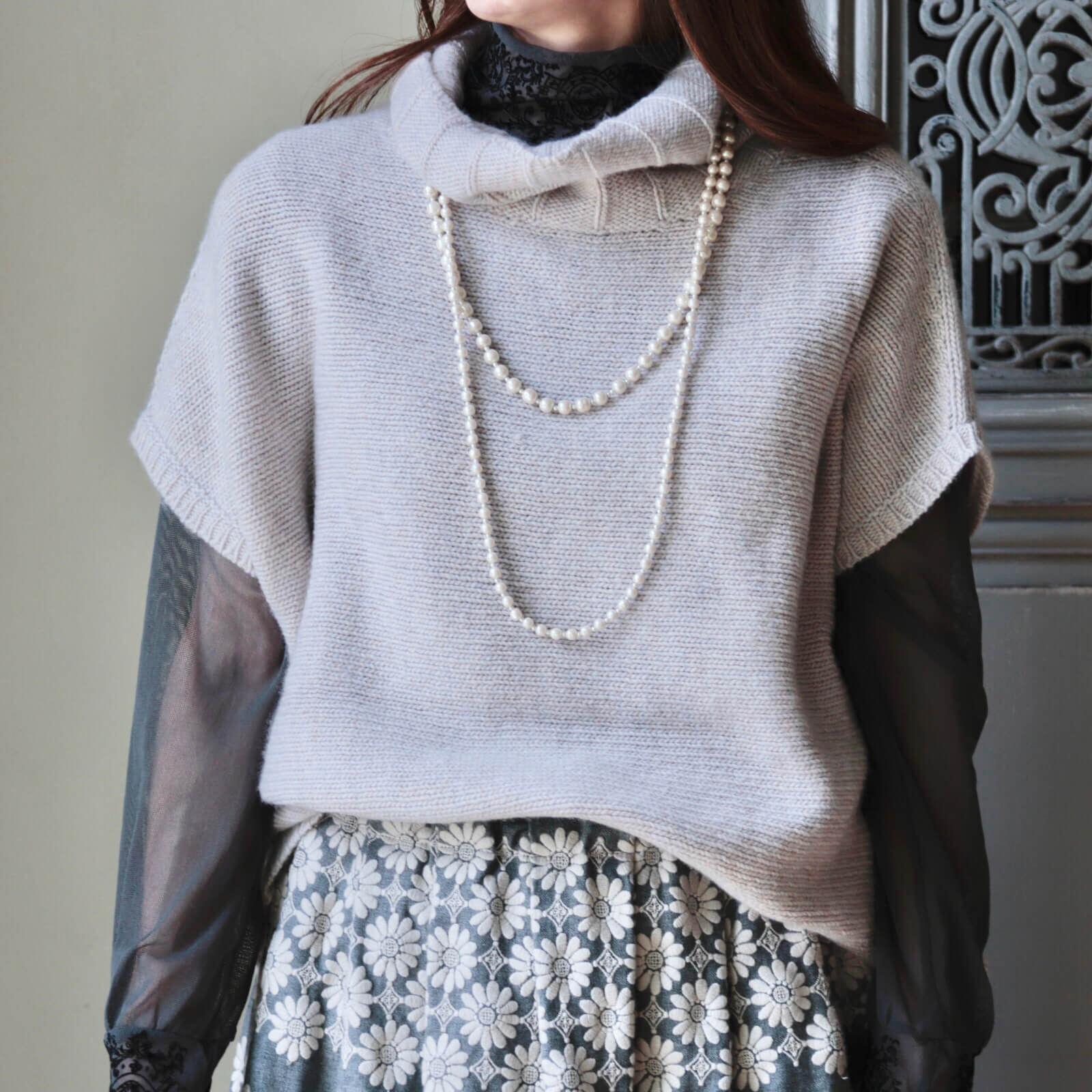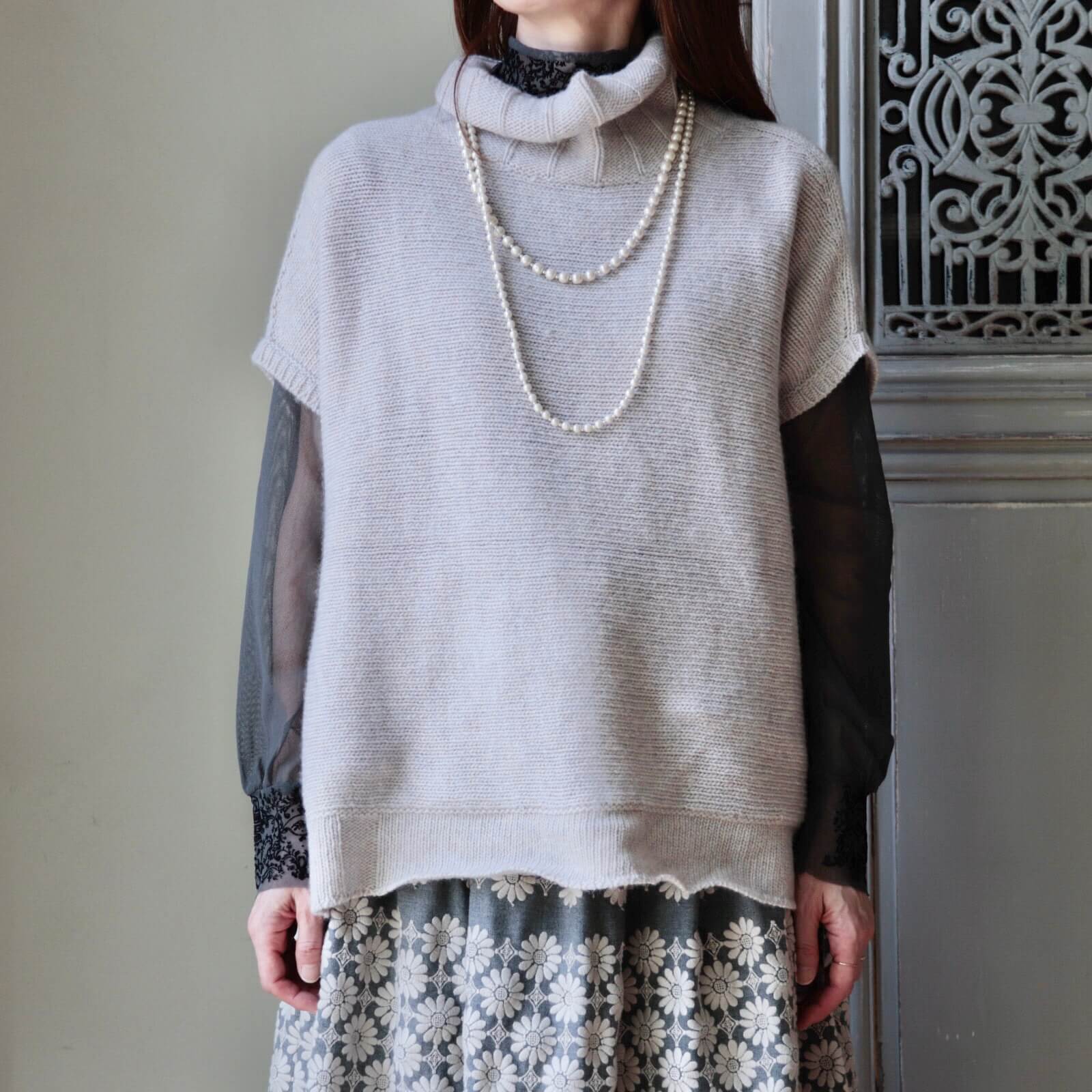 柔らかい風合いのウール100%のタートルニットベストです。