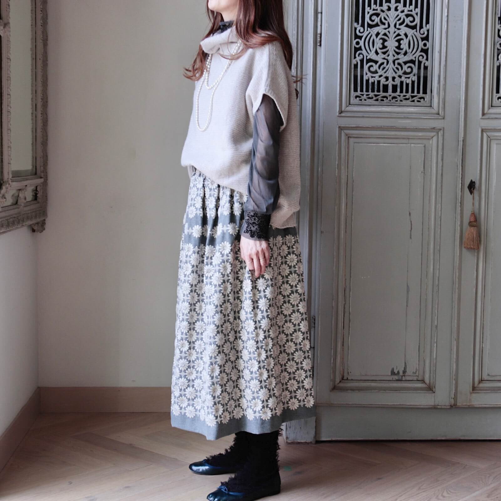 ワイドな身巾やドロップショルダー、程よい緩みのオフネック等、リラックス感の高いバランスに仕上がっています。