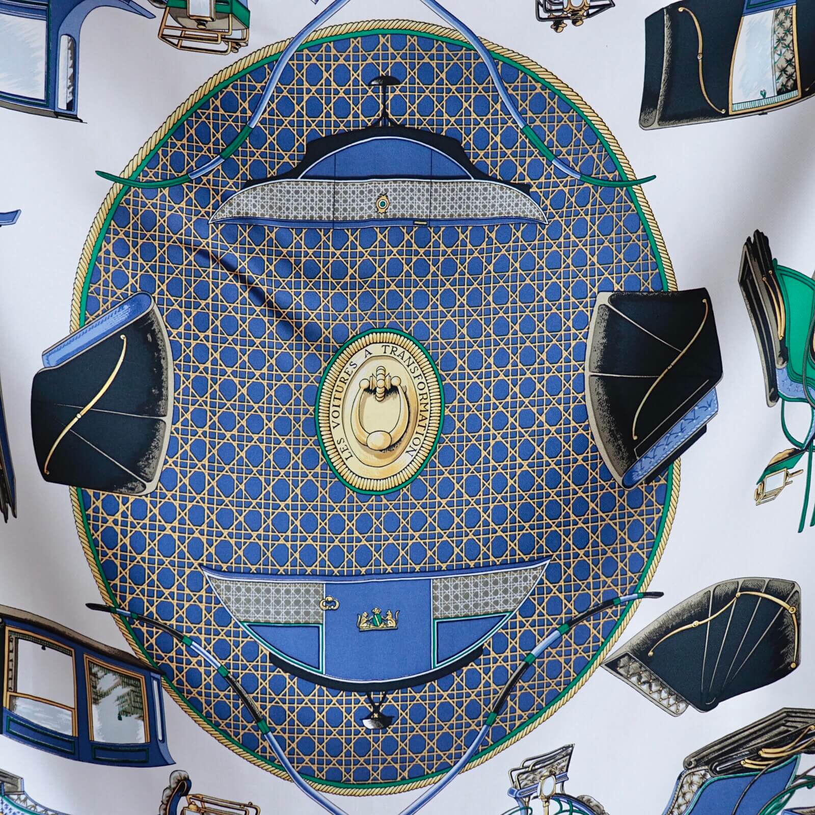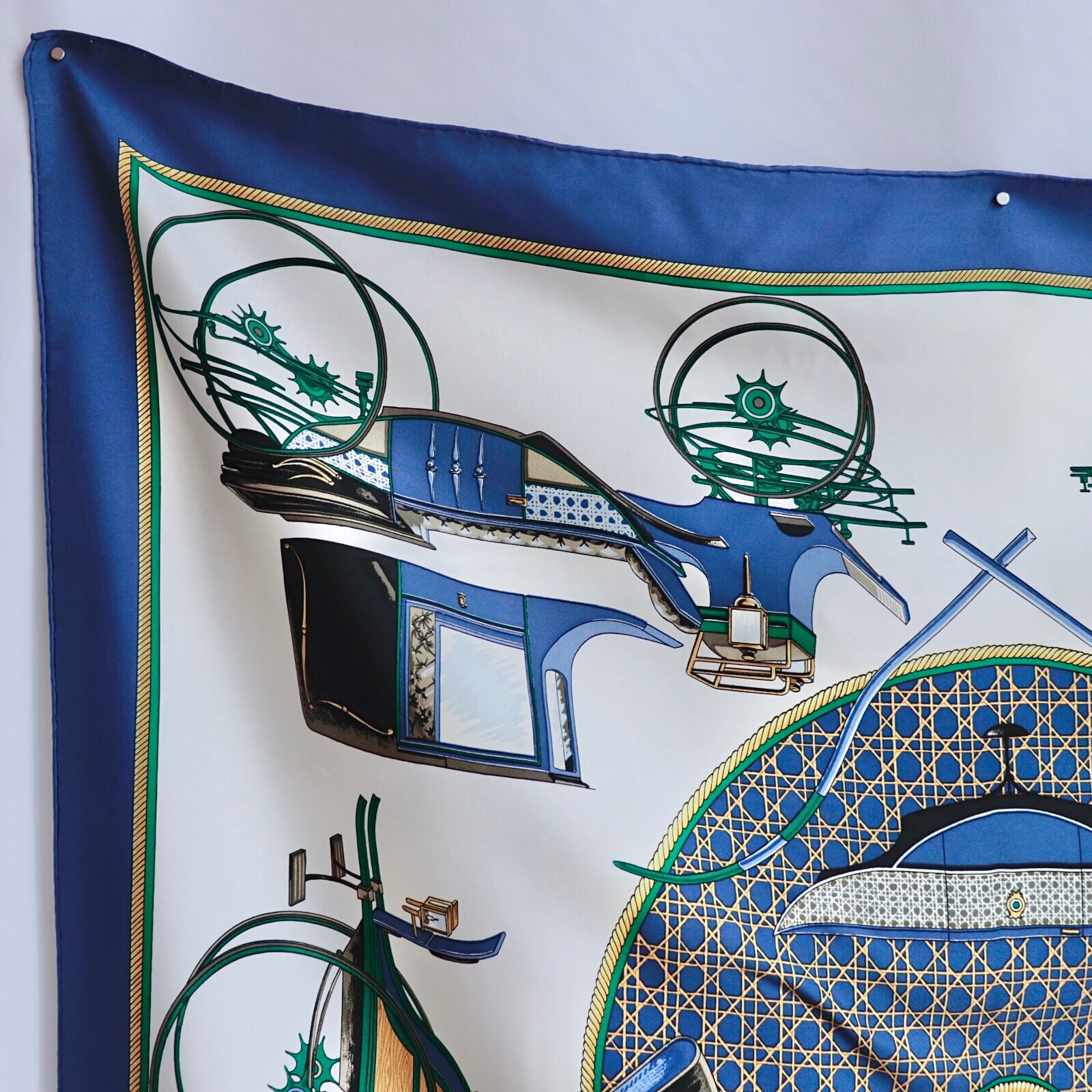 ヴィンテージ「エルメス」スカーフ「 Les VoituresATransfoemation」(折り畳み式馬車)