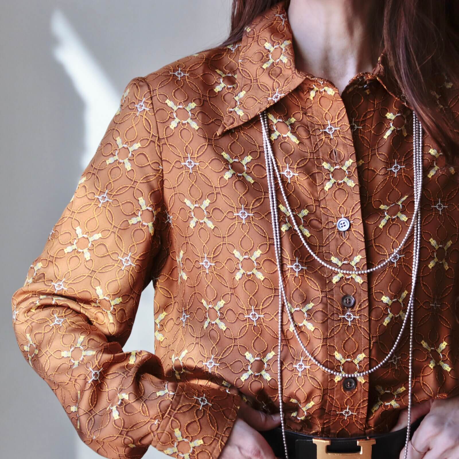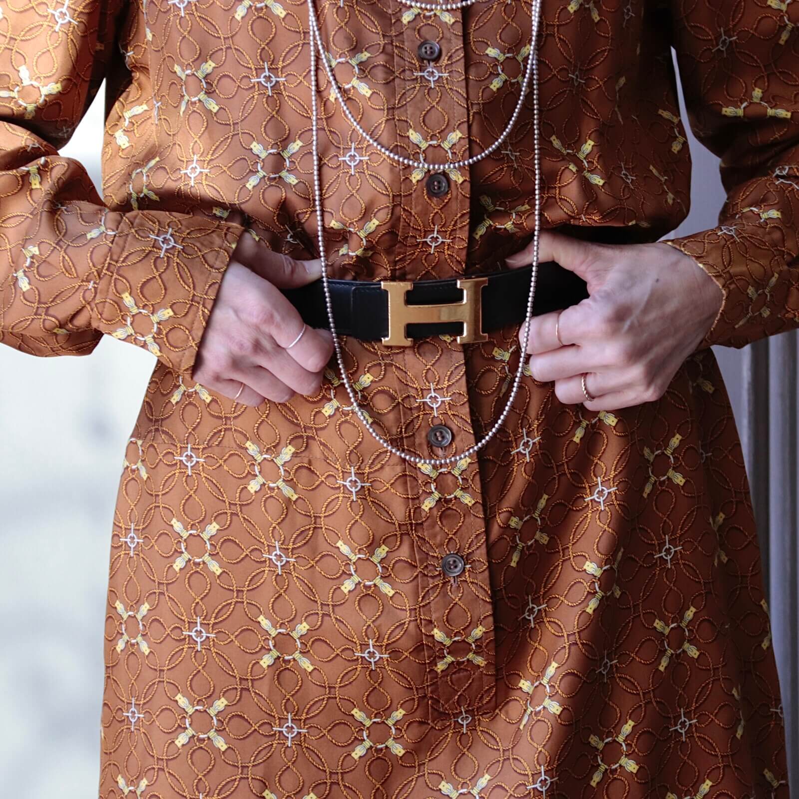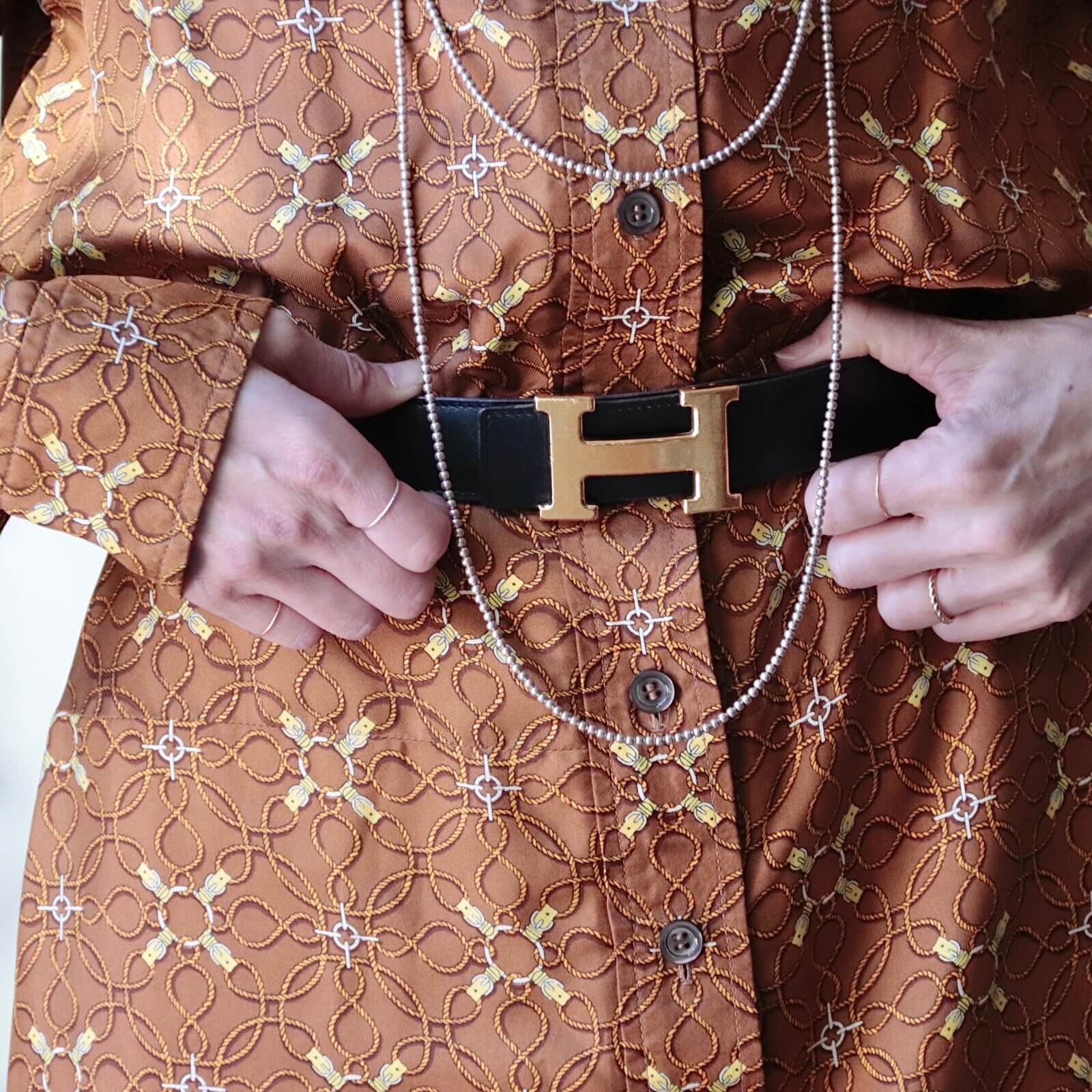 このパターンは当時スカーフでも使われていた人気のパターンで、エルメスお得意のバックルやロープが描かれています。