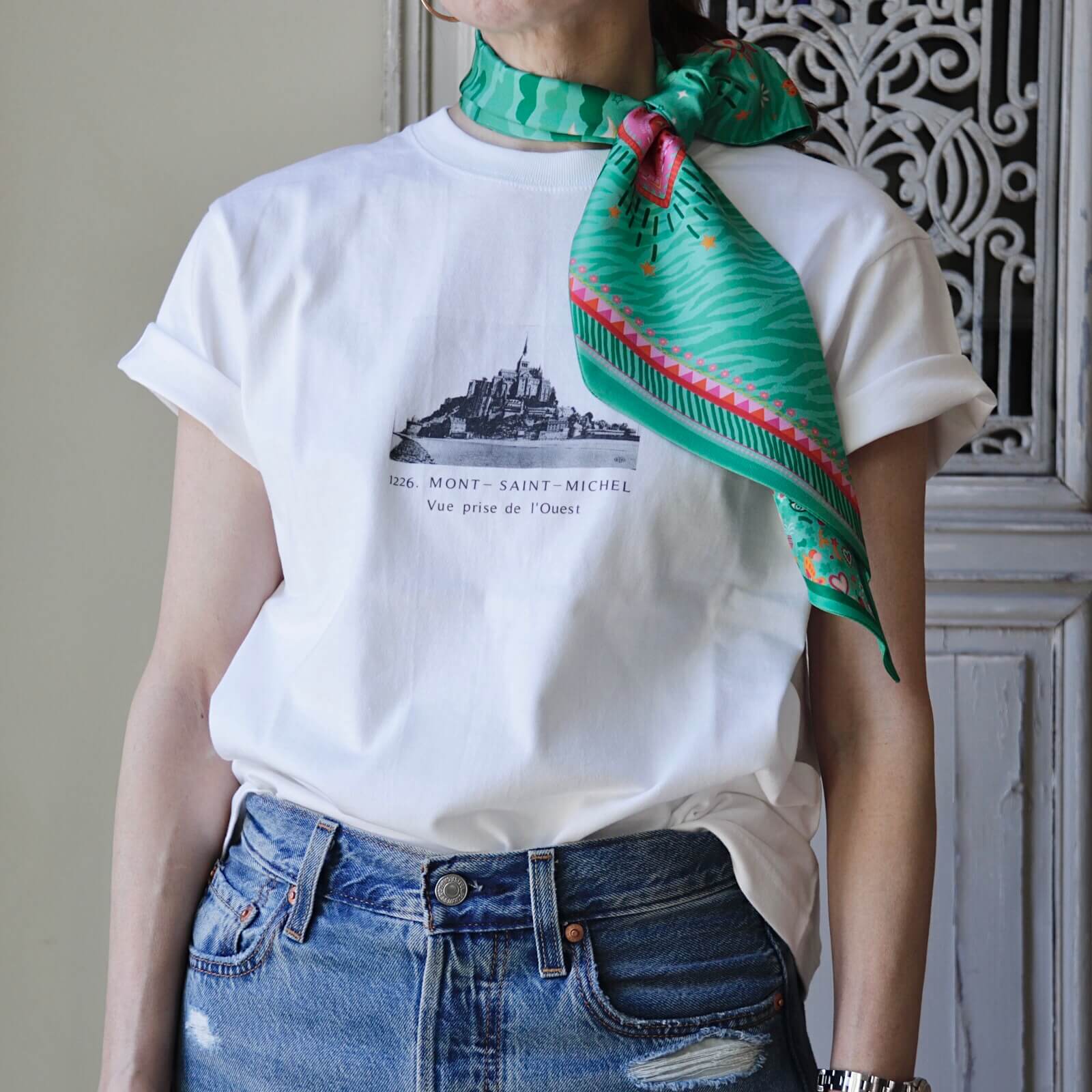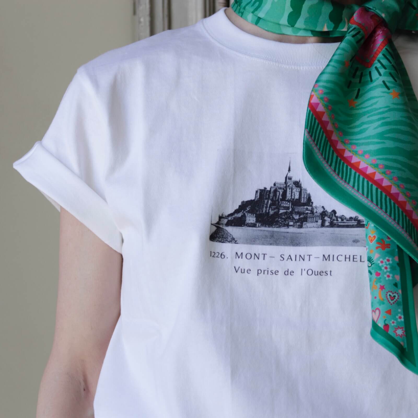 フランス・モンシャンミッシェル(Mont Saint-Michel)がプリントされたコットン100%のTシャツです。