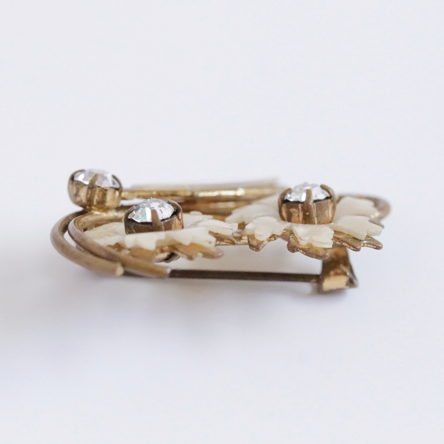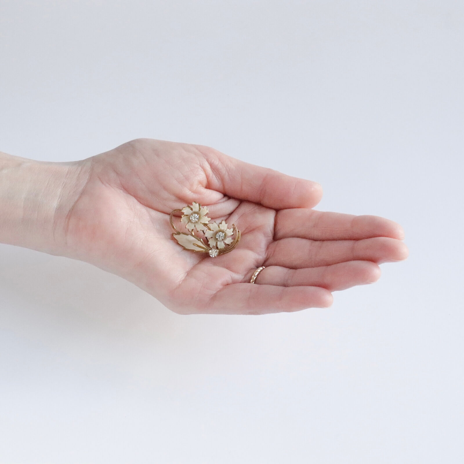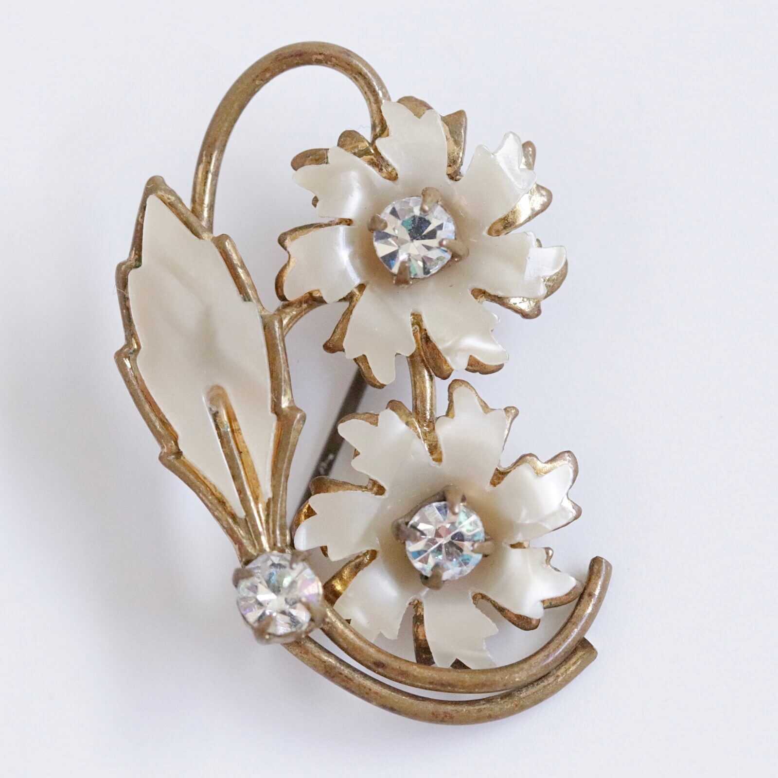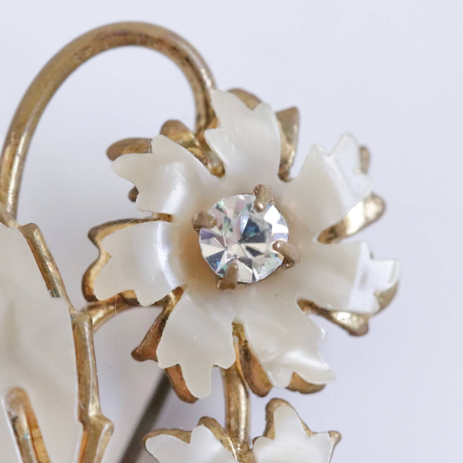 職人が真鍮の線を曲げて花とパーツ一つ一つ載せて作った愛らしいアイテムです。