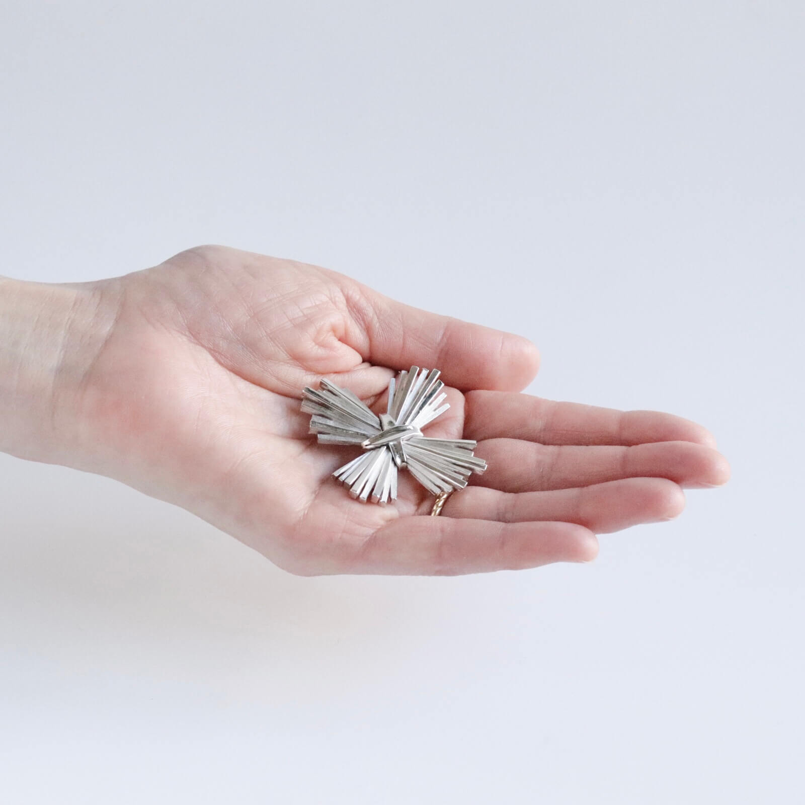 幸運のイメージにもつながるデザインのこのブローチをつけると、良いことが期待できそうな予感がします。