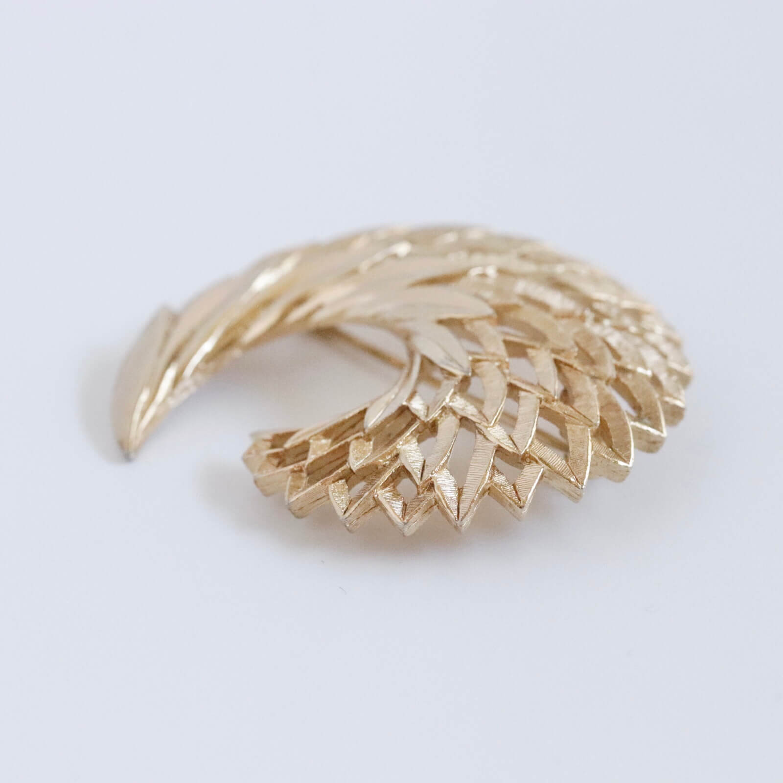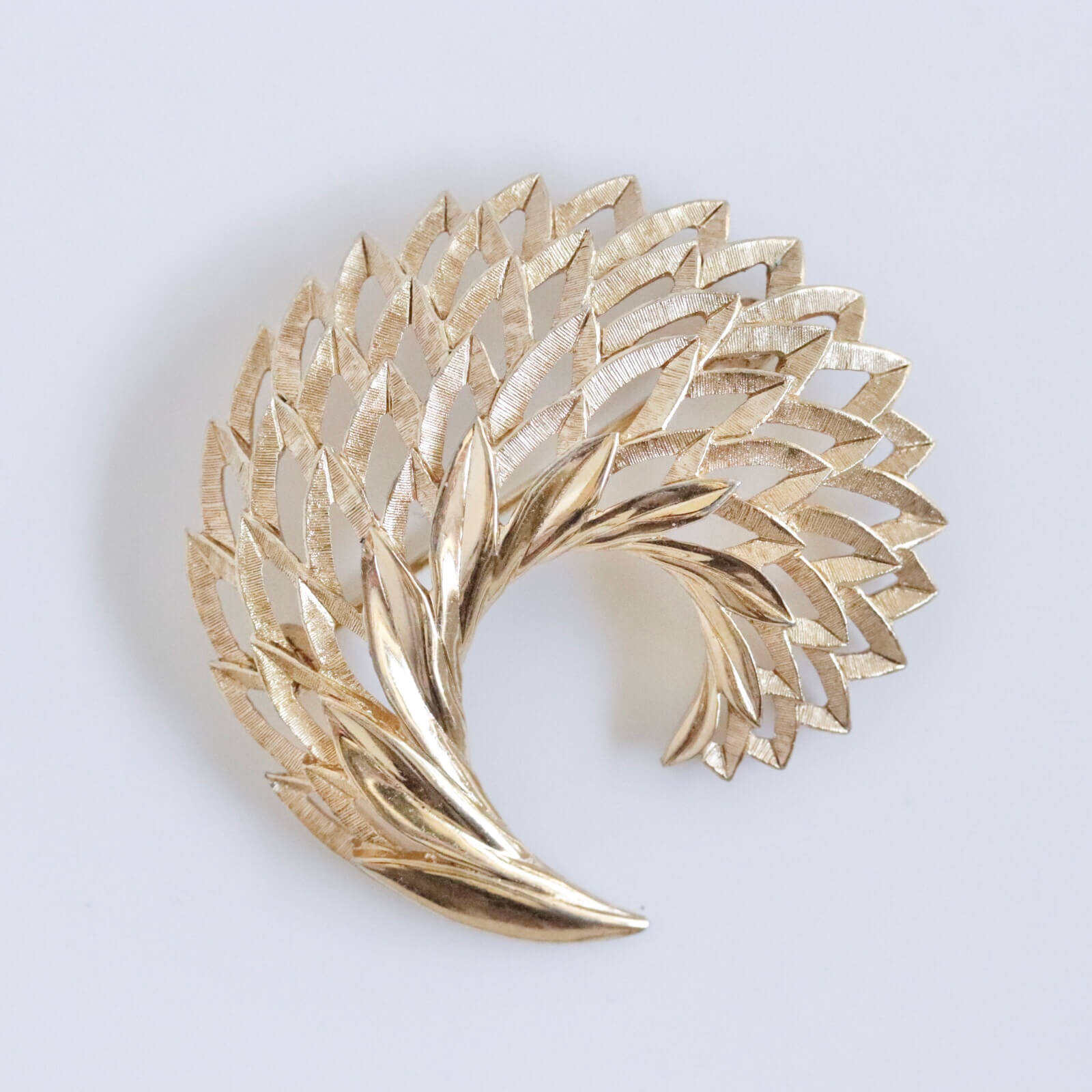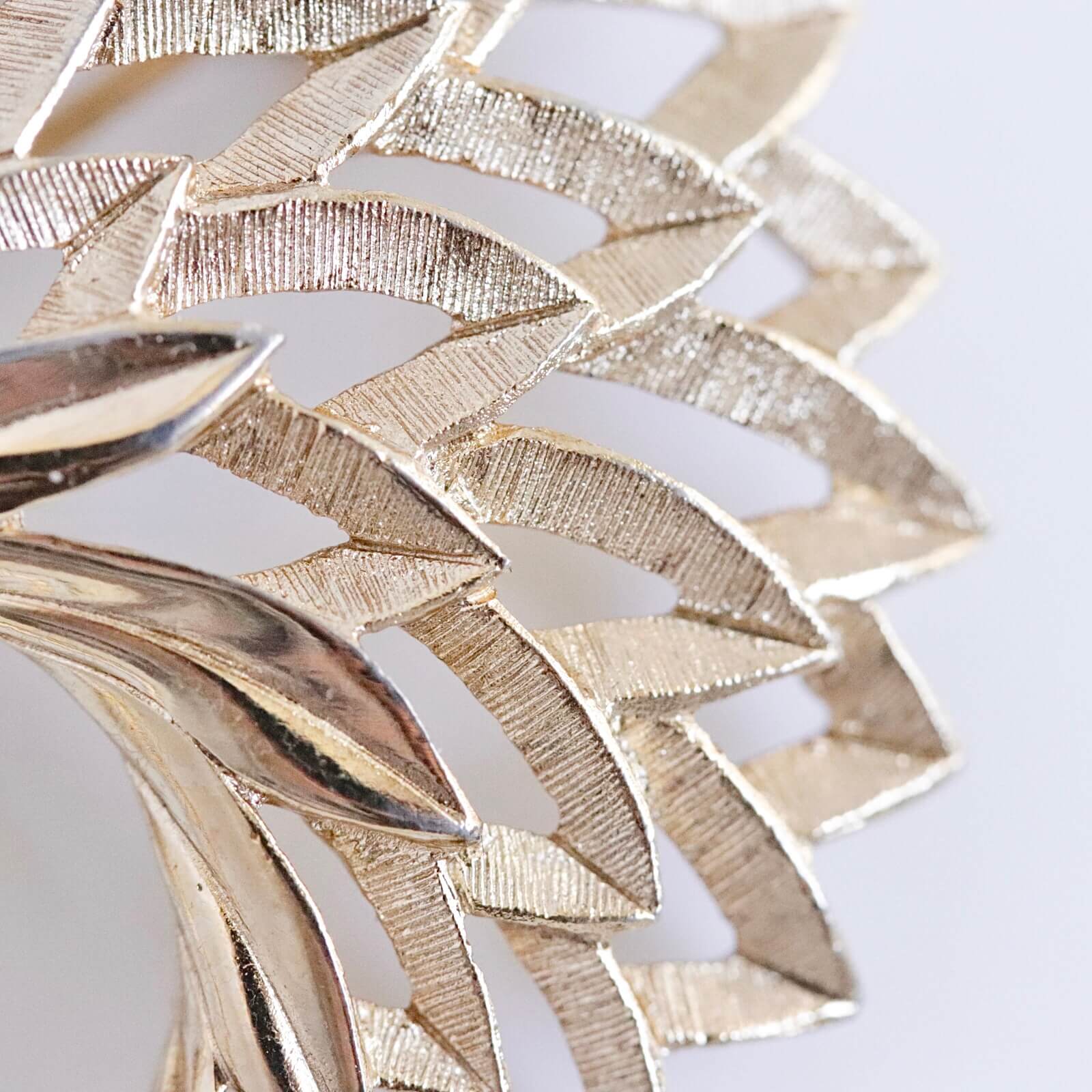 抽象化したリーフを扇状に広げた丸いシェイプのブローチです。