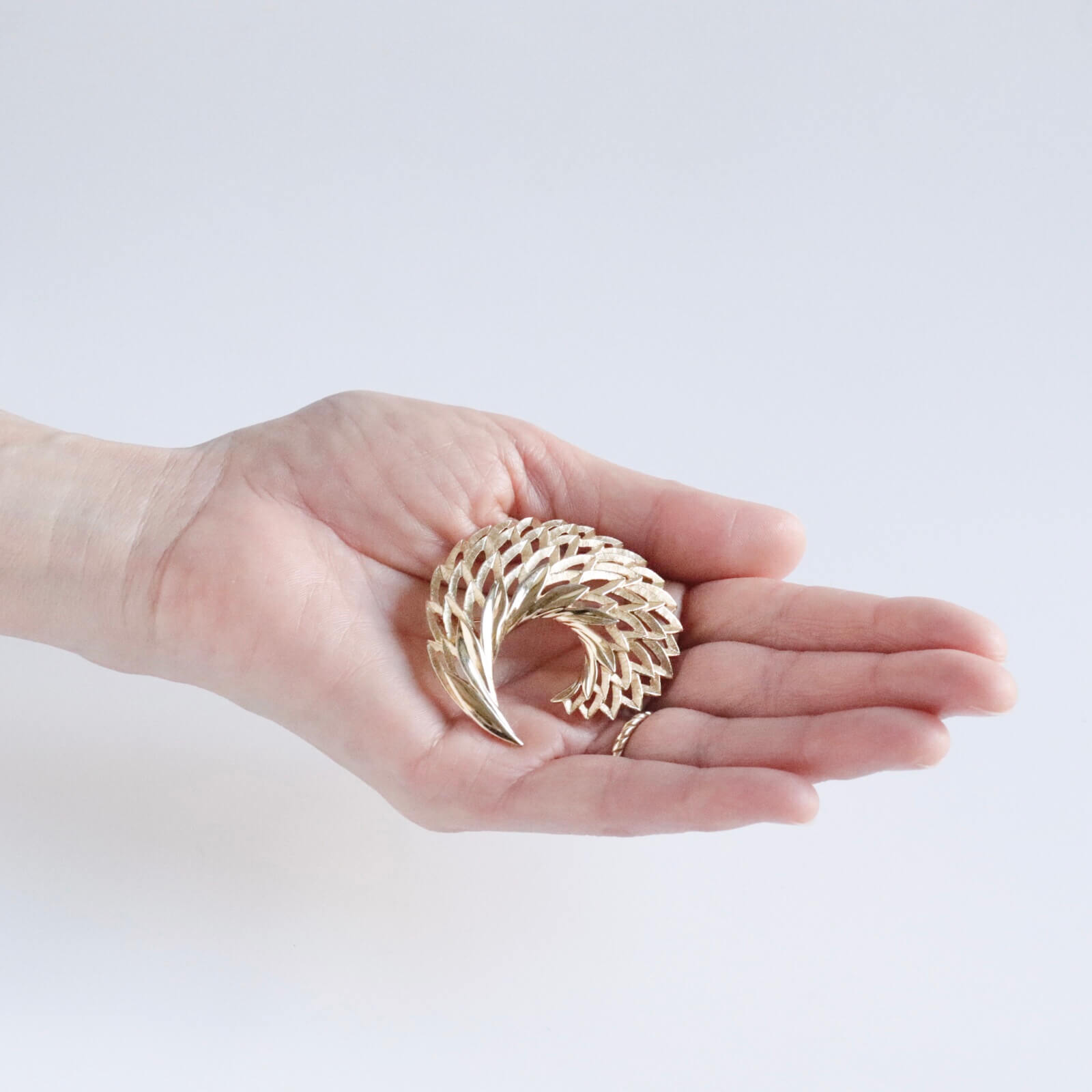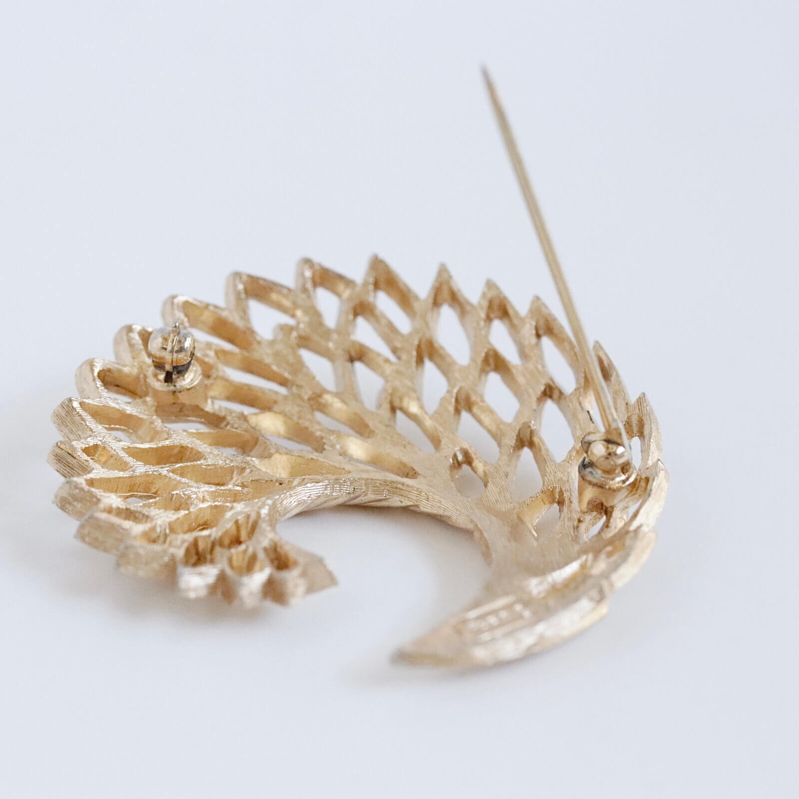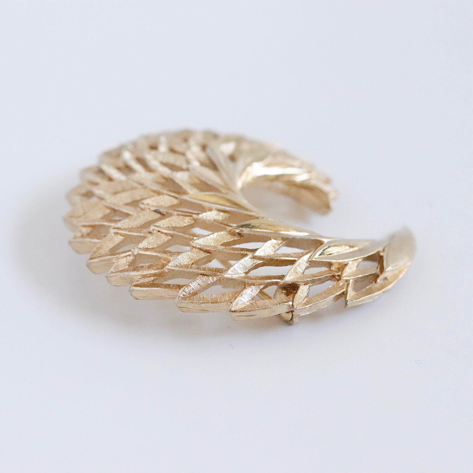 抽象化したリーフを扇状に広げた丸いシェイプのブローチです。