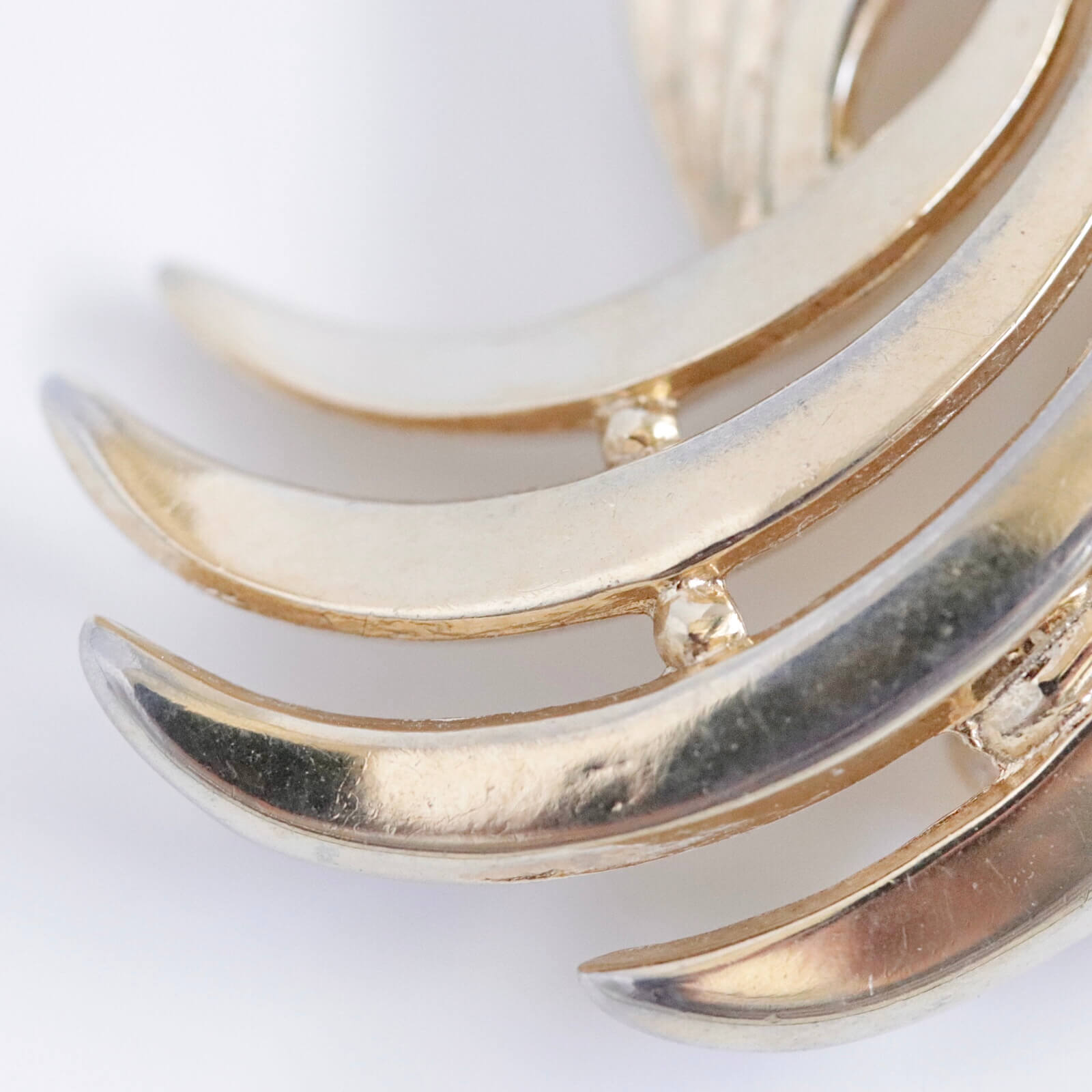 フェザーを2枚 立体感をつけてくるりと組みあわせたようなデザイン。
