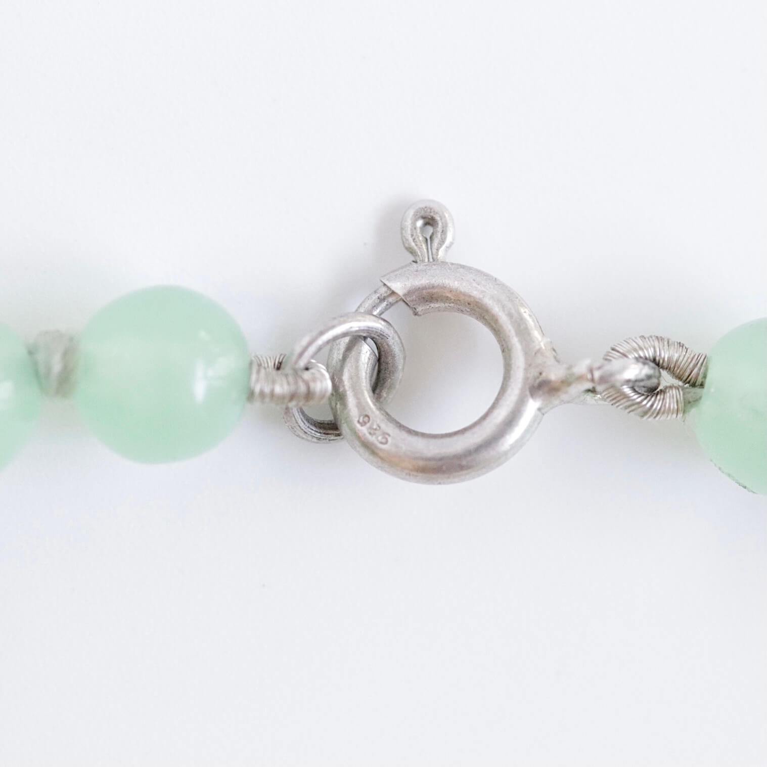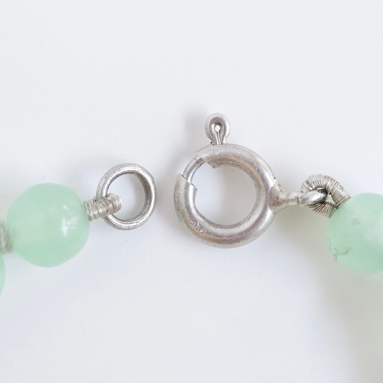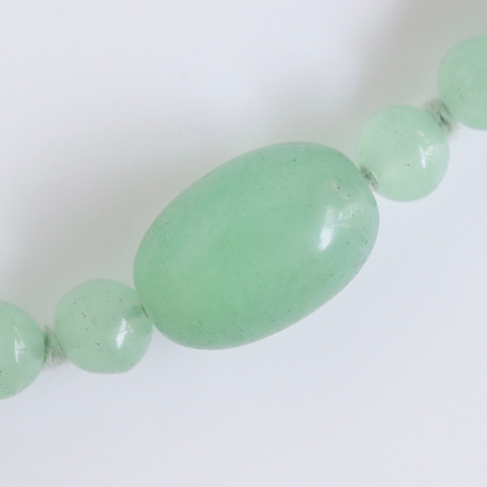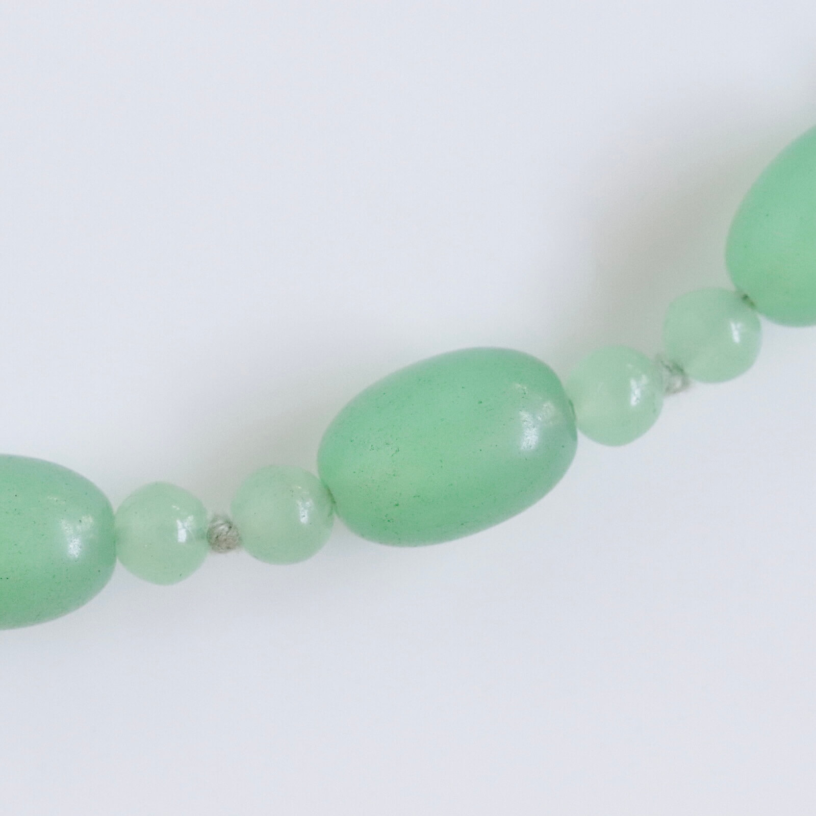 楕円型と丸型のビーズをリズムよく並べてネックレスに仕立てています。