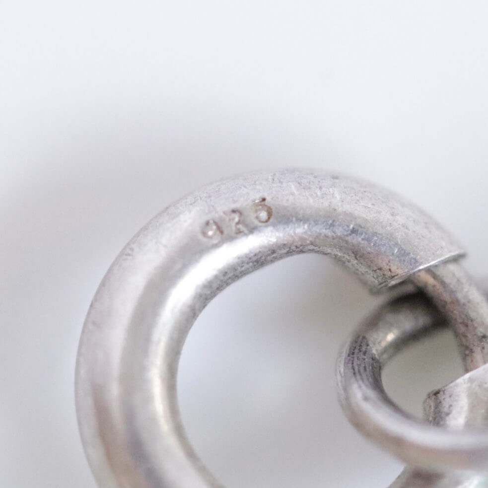 白いシンプルなTシャツに合わせただけでも存在感のあるジュエリーです。
