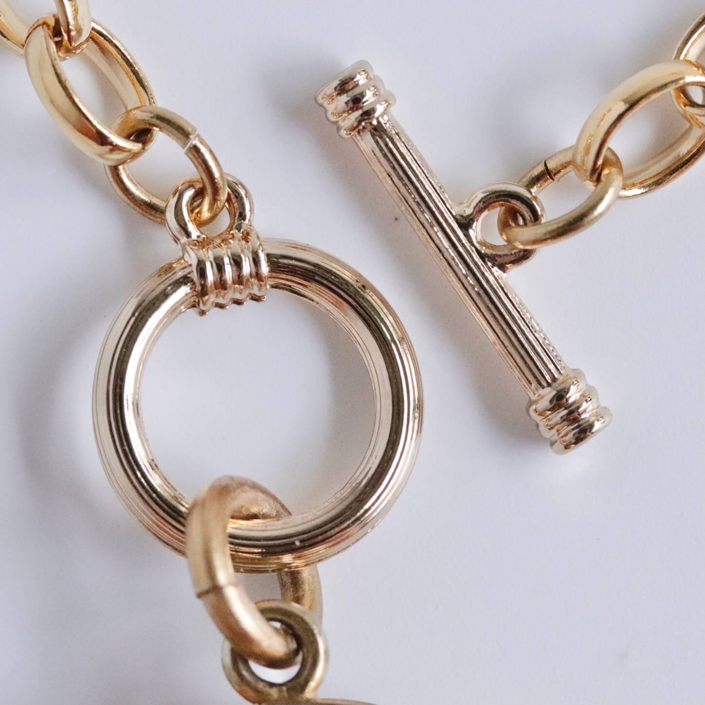 チェーンは丸みのあるオーバルの駒を繋いだシンプルながら個性も持ったデザイン。