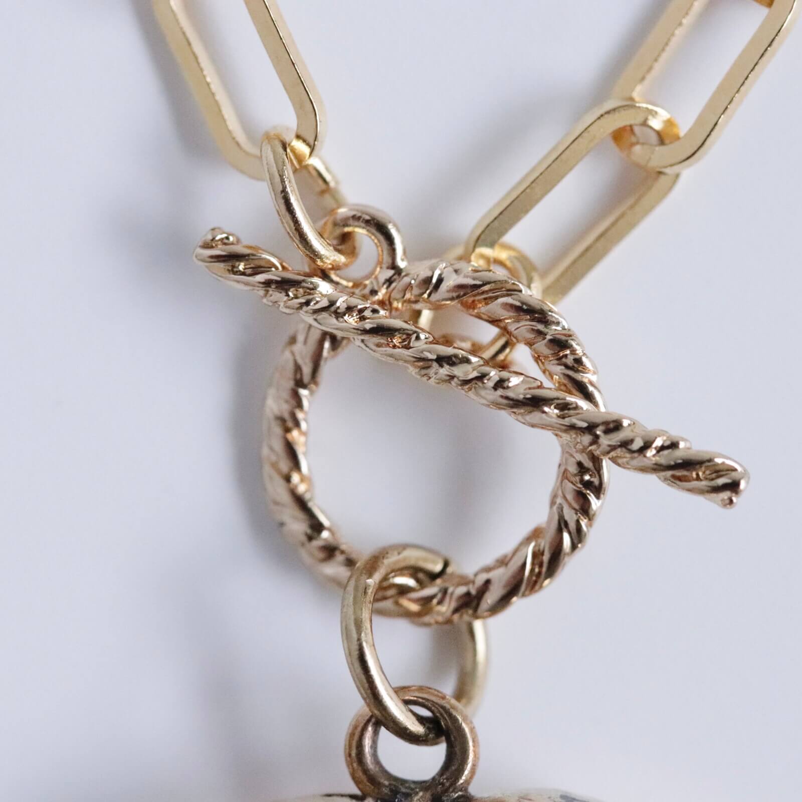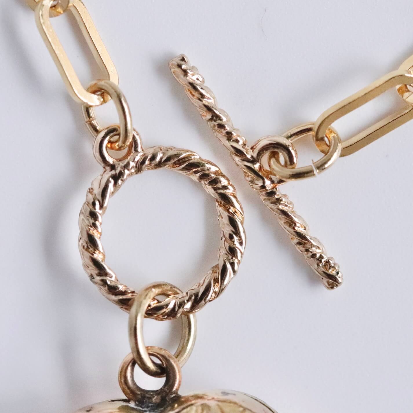 リングとバーを使った留め具にロケットをつけてフロントにポイントを持って来ました。