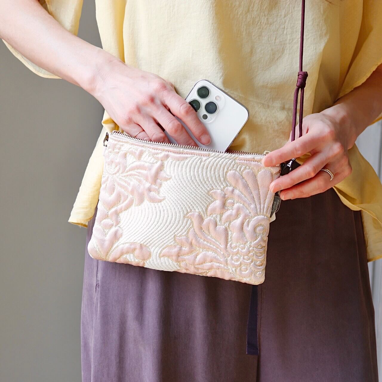 ポーチとしてはもちろん、別売りのパラコードを付けてショルダーバッグ、ハンドバッグとしてもお使いいただけます。