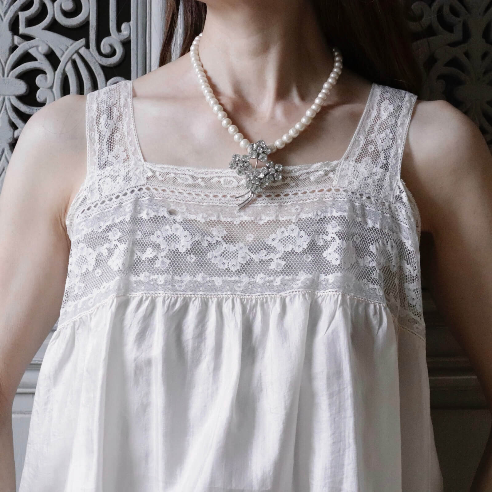 ヴィンテージ フラワーブローチ リメイク パールネックレス